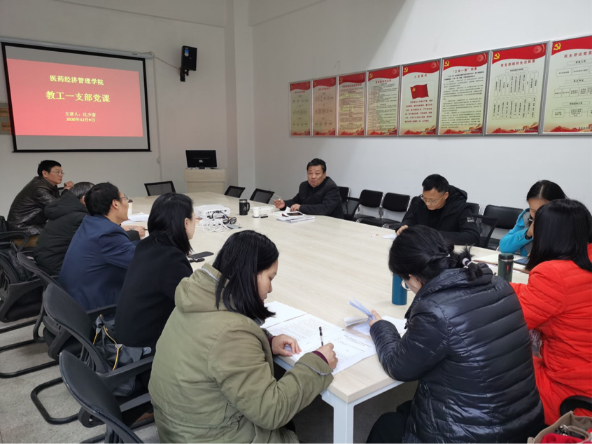 12月9日,学院党委书记沈少蕾联系支部教工第一党支部开展党课教育。沈少蕾围绕新发展理念以及世界变局问题开展党课。沈少蕾强调百年大计,教育为本,但教师打铁要需自身硬,要高度重视师德师风,提升专业能力。同时要结合世界变局,结合健康产业发展,推进一流专业一流学科工作,加强中医药公共医疗管理建设。
