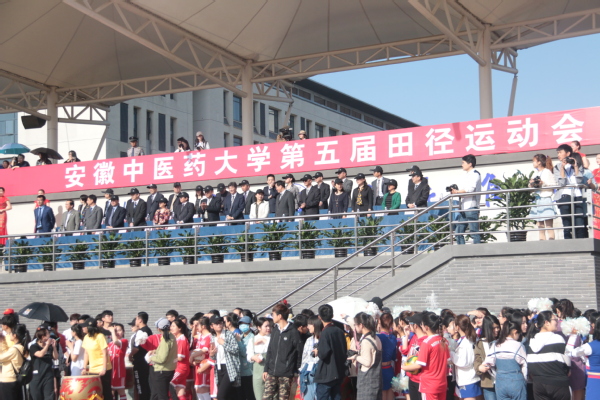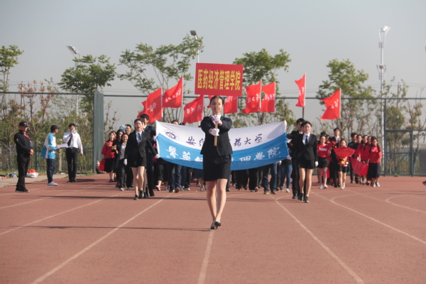 4月19日上午,安徽中医药大学第五届田径运动会在少荃湖校区拉开序幕,医药经济管理学院师生代表队整装列队,参加开幕式。