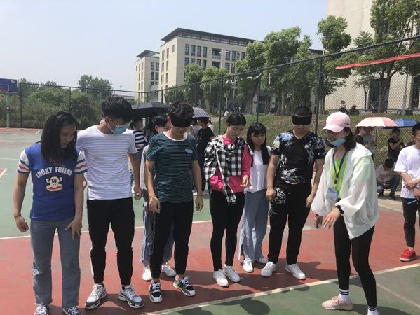 心理运动会不仅考验各位运动员的身体素质,还需要运动员有较强的心理素质和团队精神。四个比赛项目都需要同学们密切配合。在顶球竞走比赛中,需要四人相互用额头顶球向目标前进,分别完成跨越、绕障碍物等任务,而啄木鸟行动则需要七人小队分别用嘴噙住吸管,把乒乓球传递给下一个运动员,从而达到终点。搭桥过河主要考验运动会们的队间协作能力和战略战术及创造能力,以及团队间的交流合作意识。风雨同行则需要同学们接纳他人的长处,提高学生在团队合作中扬长避短的意识,比赛中运动员需要扮演各种角色,每个角色都有不同的缺点,而运动员需要相互配合通过各种障碍物完成不同要求后一起达到终点。