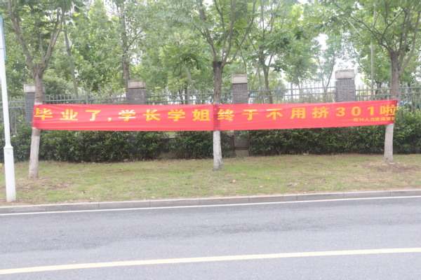 时光荏苒,转瞬即逝,大学四年的生活即将结束。大学四年,有快乐,有伤心,有成功,也有失败,这些情景构成大学四年甜美的画卷,回想起来亦流连忘返。为了让毕业生们再次感受到安中大地的温暖和学子们对于学长学姐们的留恋,各班都挂起了横幅,抒发着他们对毕业生返校的愉悦的心情。这些横幅有的慷慨激昂,有的显露着一些打趣。301将近一个小时的行程加上无与伦比的拥挤,成为了同学们津津乐道的话题。17级人力资源管理班挂起的横幅,不仅让毕业生们回想那段挤公交的回忆,还成为毕业生们不可磨灭的一部分。15级、16级、17级国际经济与贸易的学生创新思维,他们的横幅如诗一般的展现了他们对于毕业生们返校的欢迎和对毕业生们纯真的祝愿。