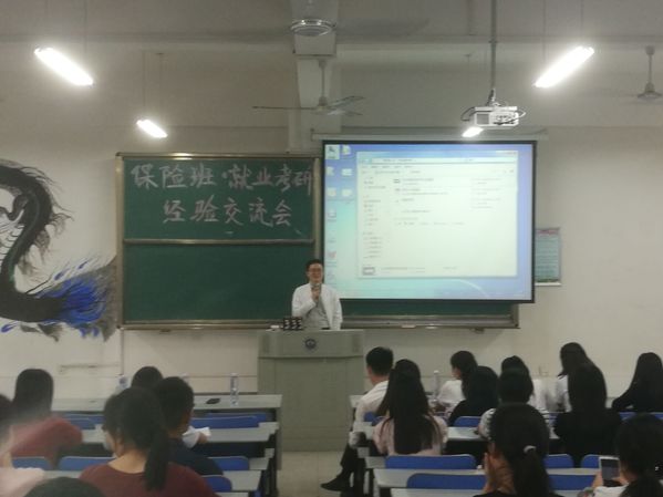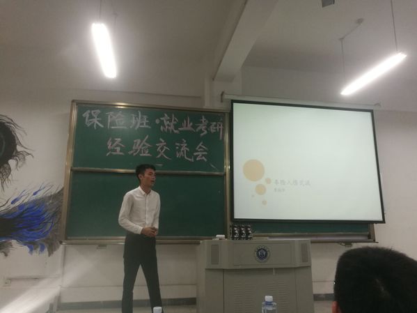 5月27日下午,医药经济管理学院举办保险专业就业考研经验交流会。学院保险教研室主任刘爱超出席、保险专业各年级同学聆听了交流会。2014级保险专业夏福华、褚雪薇等优秀学生代表为在校同学们上了一堂生动有趣的经验分享课。