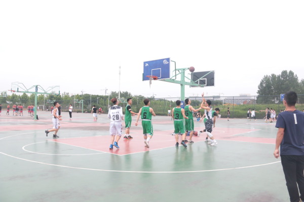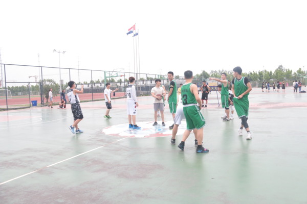 5月30日,男篮一队进行小组决赛。赛前,球员们到场做着充分准备活动。随着裁判的哨响,整个球场充满了紧张的气氛,球员的激情全都淋漓尽致的体现在此刻的篮球场上。比赛进程中,队员们都全力以赴,用心防守、有力阻挡,越战越勇,显示了他们极佳的心理素质。在场同学们也情绪高涨、摇旗呐喊,不时为队员打气、喝彩,气氛热烈。赛场上,双方拼抢很激烈,带球、运球、投篮等一系列动作潇洒、规范,引来围观同学一阵阵地喝彩。