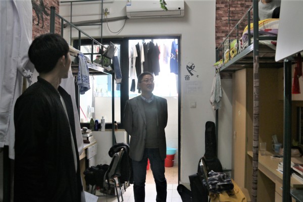 本次走访主要检查学生寝室的卫生状况,安全问题等。沈少蕾在检查过程中强调了寝室卫生的重要性,他指出,寝室是大学生日常生活的主要场所,它在某种程度上反映了学生的精神面貌,寝室卫生势必影响大学生的日常学习。对于一些卫生环境良好的寝室,沈少蕾对他们进行了表扬。丰志培亲切询问了同学们平时课余生活的安排,对待学习的态度并语重心长地提出了教诲,他告诫同学们千万不可以整日颓废在宿舍中,要走出宿舍。同学们虚心接受了领导们的意见,表达了想要营造一个好的寝室氛围的决心。