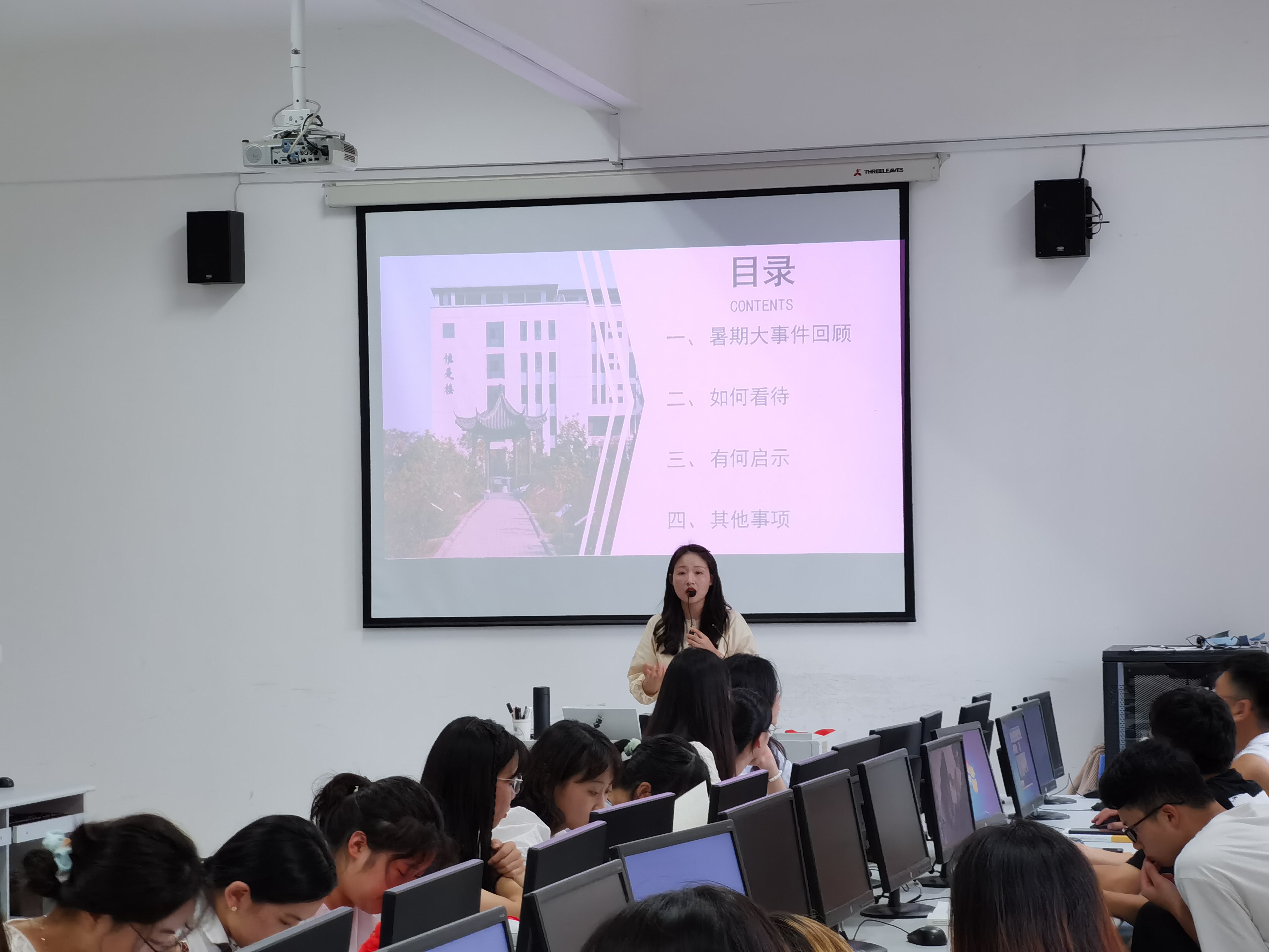 各班辅导员在主题班会上系统传达秋季学期疫情防控工作要求,提醒同学们做好个人防护与消毒,加强防诈骗、防传销、网贷等安全教育,引导学生在做好疫情防控的同时,尽快恢复正常学习状态。同时强调要关注宿舍用电安全,杜绝宿舍安全隐患,做到纪律,安全,学习三到位。辅导员还在主题班会上强调了知校爱校的重要性,培养了学生的爱校情怀,增强学生主人翁意识,引导学生明确使命,敢于担当。
