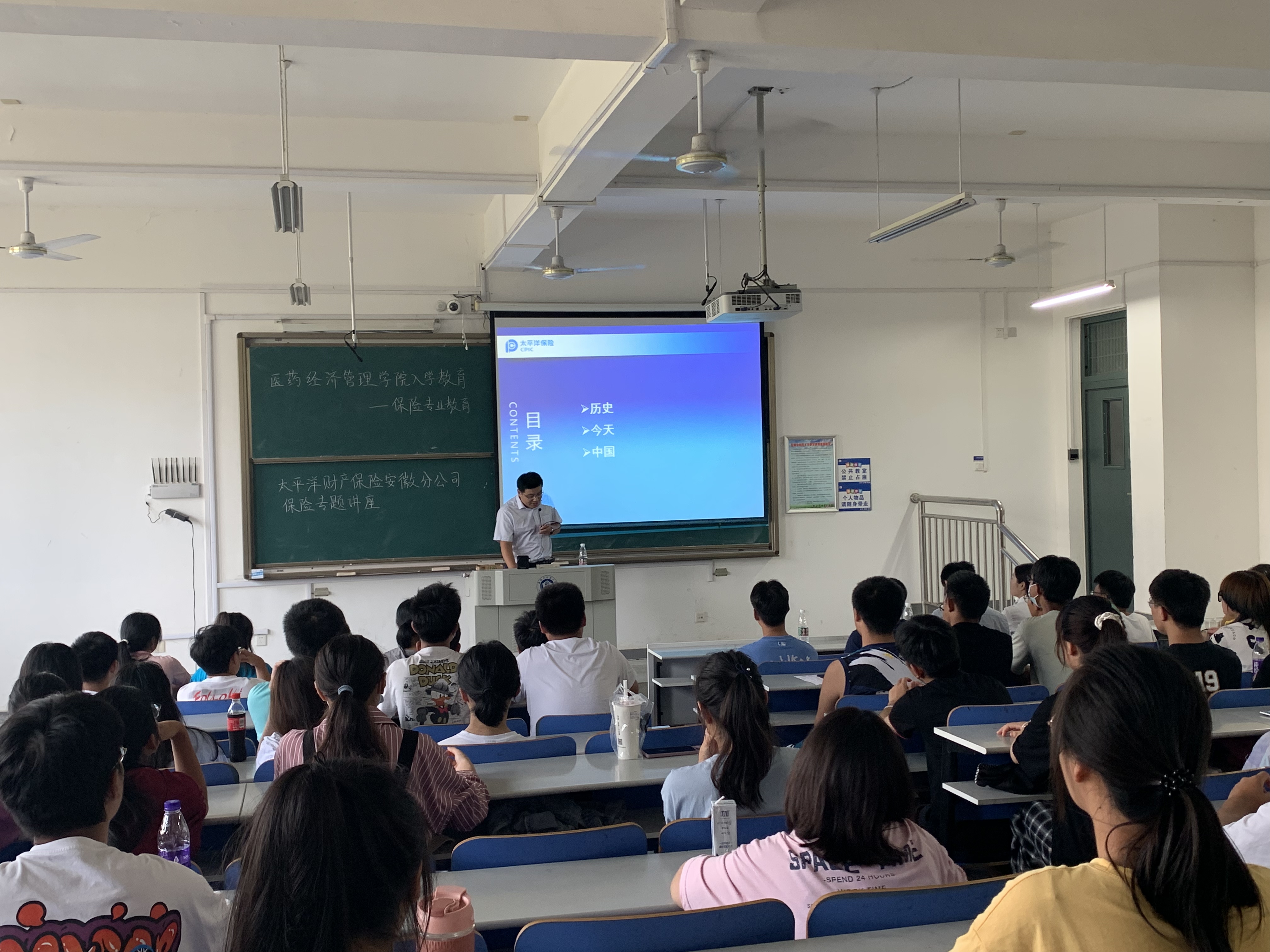 为加强2021级新生对专业的认知,医药经济管理学院结合入学教育分专业开展新生专业思想教育。9月28日,学院保险学专业邀请中国太平洋保险(集团)财产股份有限公司安徽分公司负责人为2021级保险学生做新生专业思想教育。