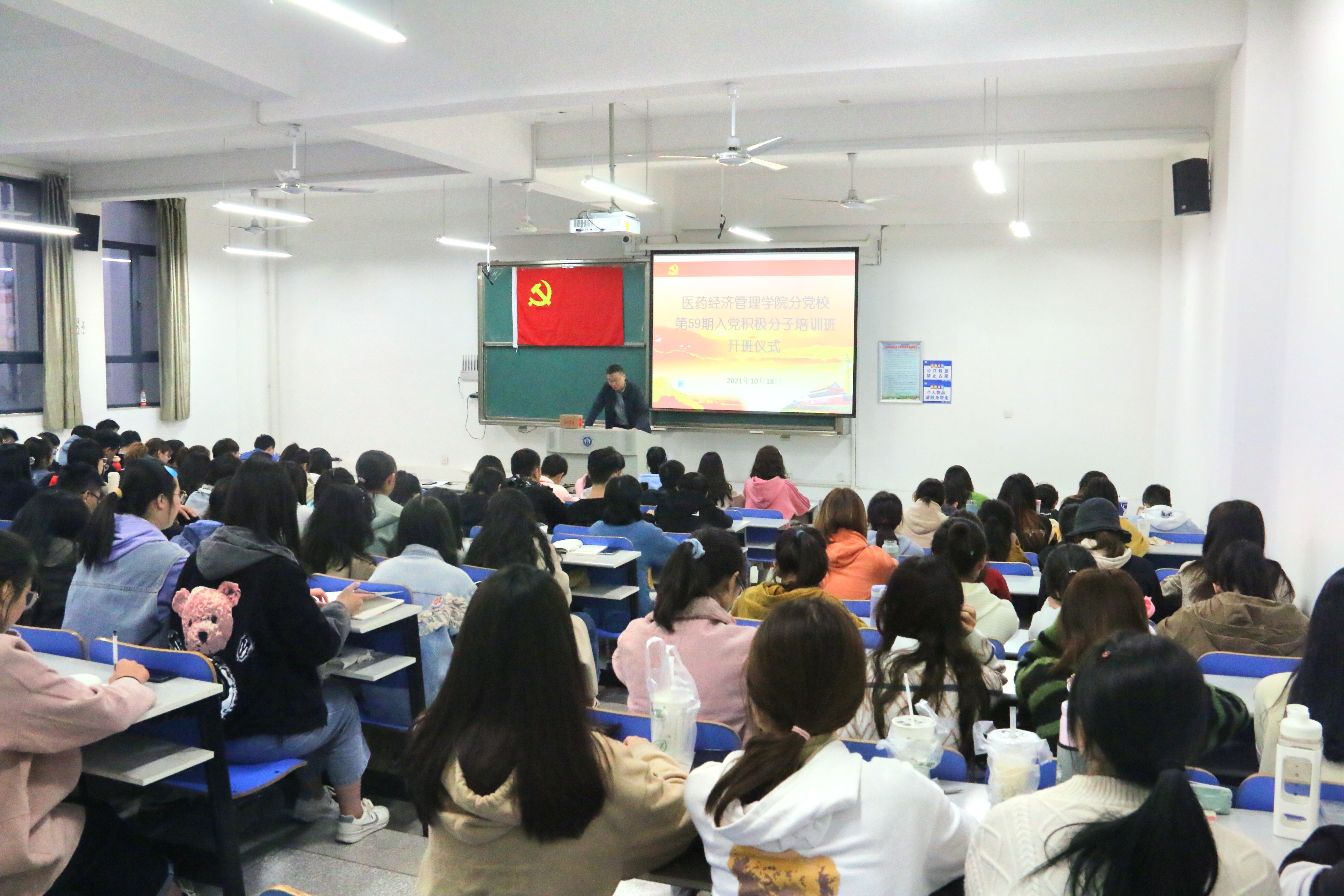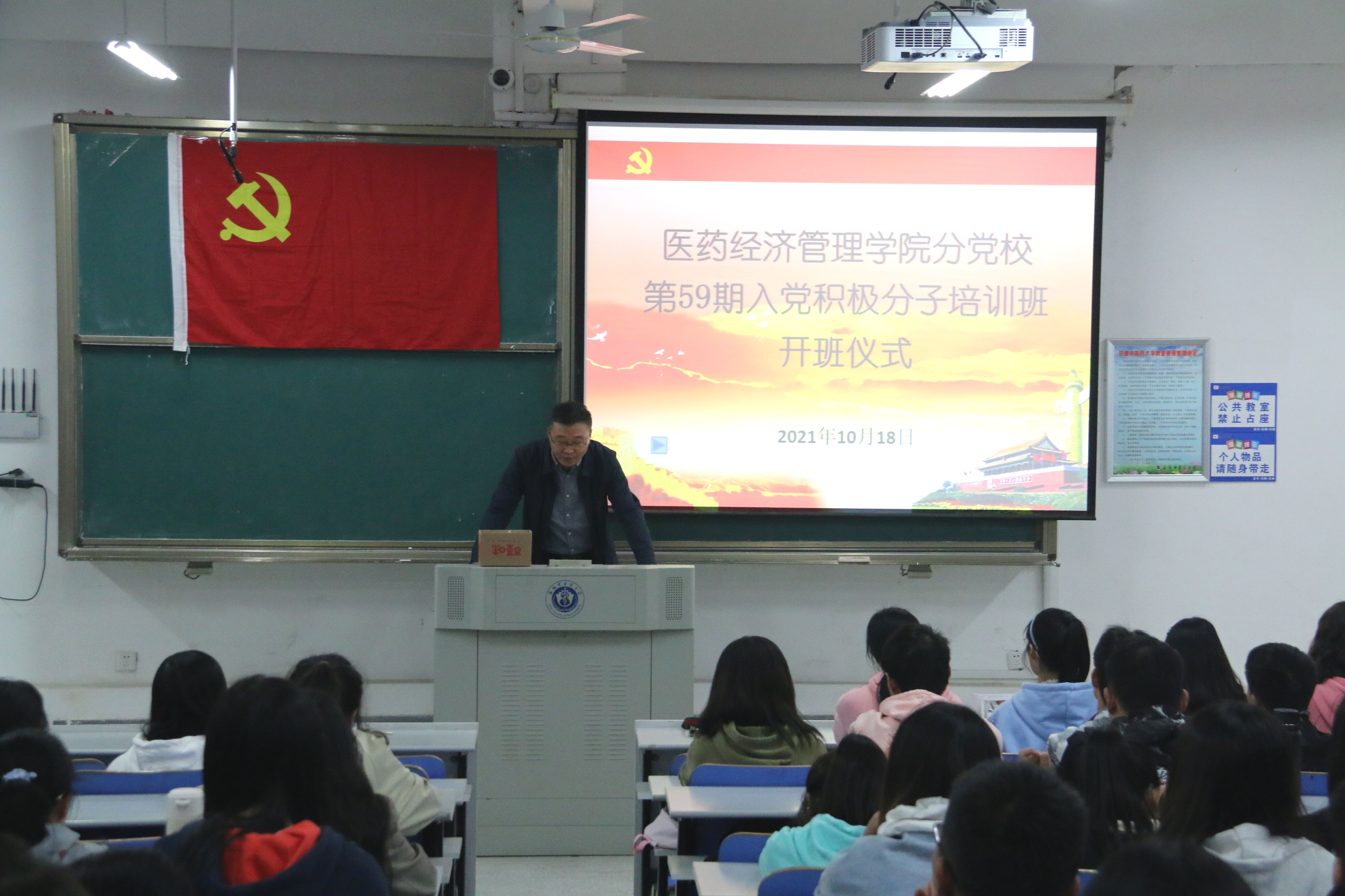 为进一步提高入党积极分子政治理论素质,端正入党动机,坚定入党信念,10月18日,医药经济管理学院院党委在公共教学楼A312举行第59期入党积极分子暨青年马克思主义者培养工程培训班开班典礼,学院党委书记冯鑫出席开班典礼。此次培训共有来自各班级123名学员参加,开班典礼由培训班班主任孙孝涧主持。