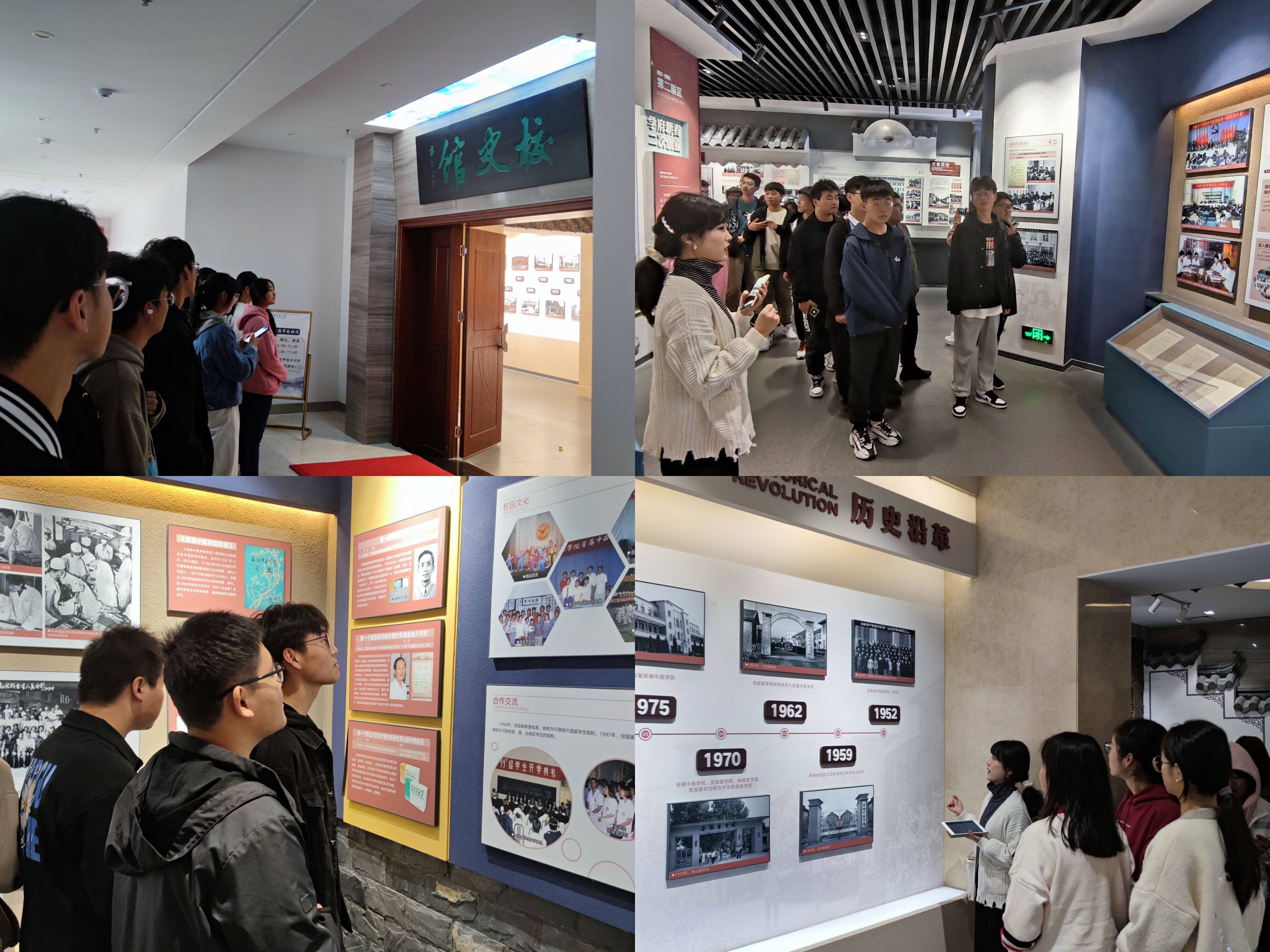 各新生班级在学院的组织下有序进入校史馆进行参观,在解说员的带领下,依次参观了校训墙、发展历程图、各届校领导、学校的各项成就等展示区。校史馆呈现了安徽中医药大学的发展历史,展示了安徽中医药校史风采和独特的优秀文化。解说员耐心为新生们讲解各个模块的图片、实物背后的历史渊源,引发了学生的强烈的兴趣和自豪感,纷纷驻足观看欣赏。同学们边参观边讨论,感受安徽中医药大学60多年的风雨征程,也进一步领悟了“至精至诚、惟是惟新”的校训精神。