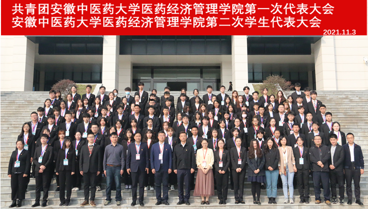 共青团安徽中医药大学医药经济管理学院第一次代表大会、医药经济管理学院第二次学生代表大会于2021年11月3日如期召开。安徽中医药大学团委副书记彭程,医药经济管理学院党委书记冯鑫,党委副书记彭青和,校团委组织发展科方悦,医药经济管理学院分团委书记范思敏,分团委副书记李国转,全体辅导员及全体团代表和学代表参加大会。