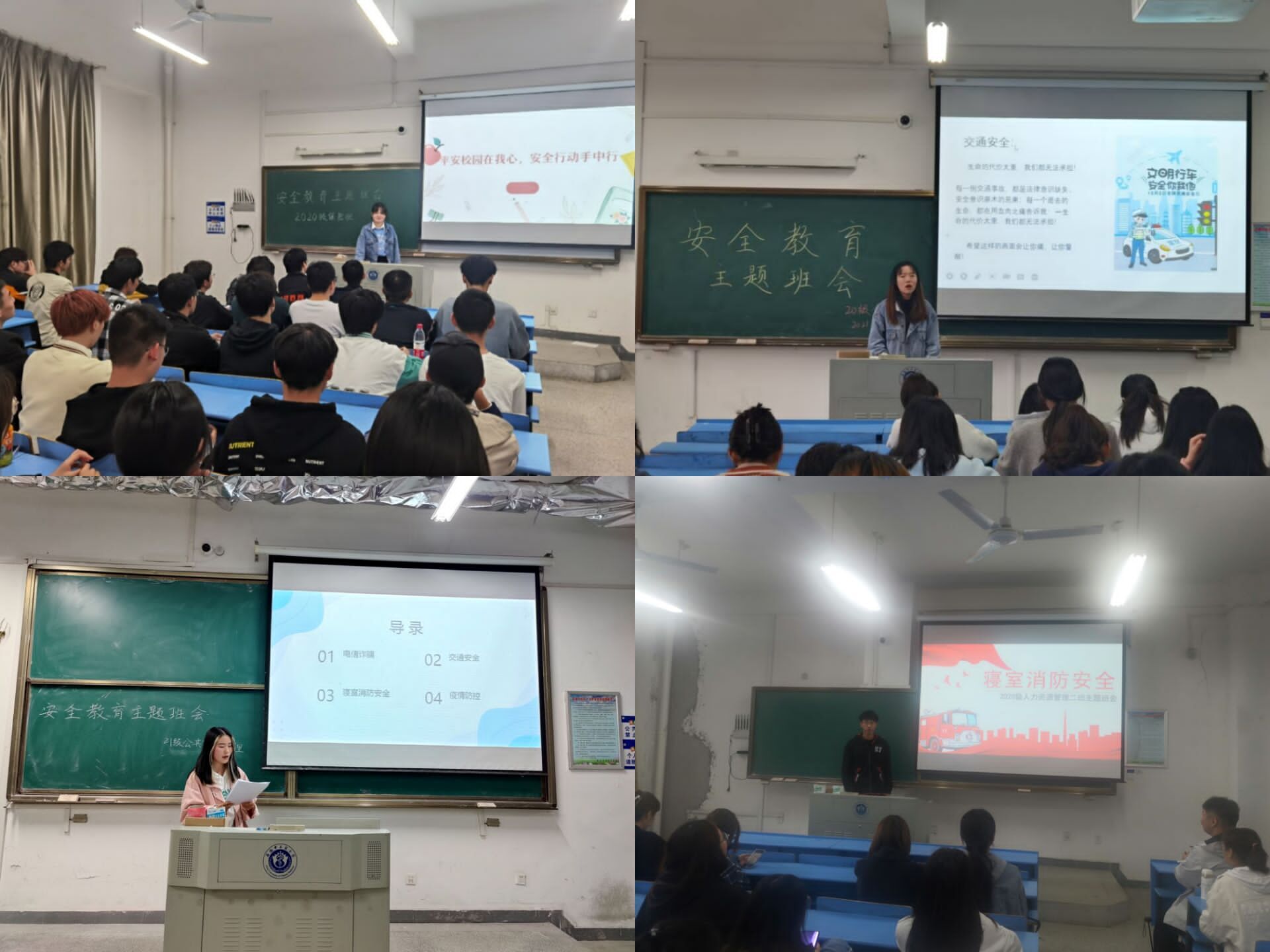 各班级接到学院的任务要求后,积极开展相关工作,安排好分工。各班级分别从大学生防诈骗安全教育、交通安全教育、宿舍消防安全教育、疫情防控安全教育等角度开展本次主题班会。同学们积极搜集相关方面的素材,认真制作讲稿和PPT,班会上,每班主讲同学精神饱满,通过文字、图片、视频等多种形式相结合的方式进行,提醒同学们在防诈骗方面要提高警惕,勿存贪念等。在交通安全方面要遵守交通规则,走路莫看手机等。在宿舍消防安全方面要及时断电断水、勿使用违规电器等。在疫情防控方面出门要带好口罩做好防护,避免去人员密集区域等。班级的同学也积极分享了自己本次班会的心得体会,并作出相关承诺。