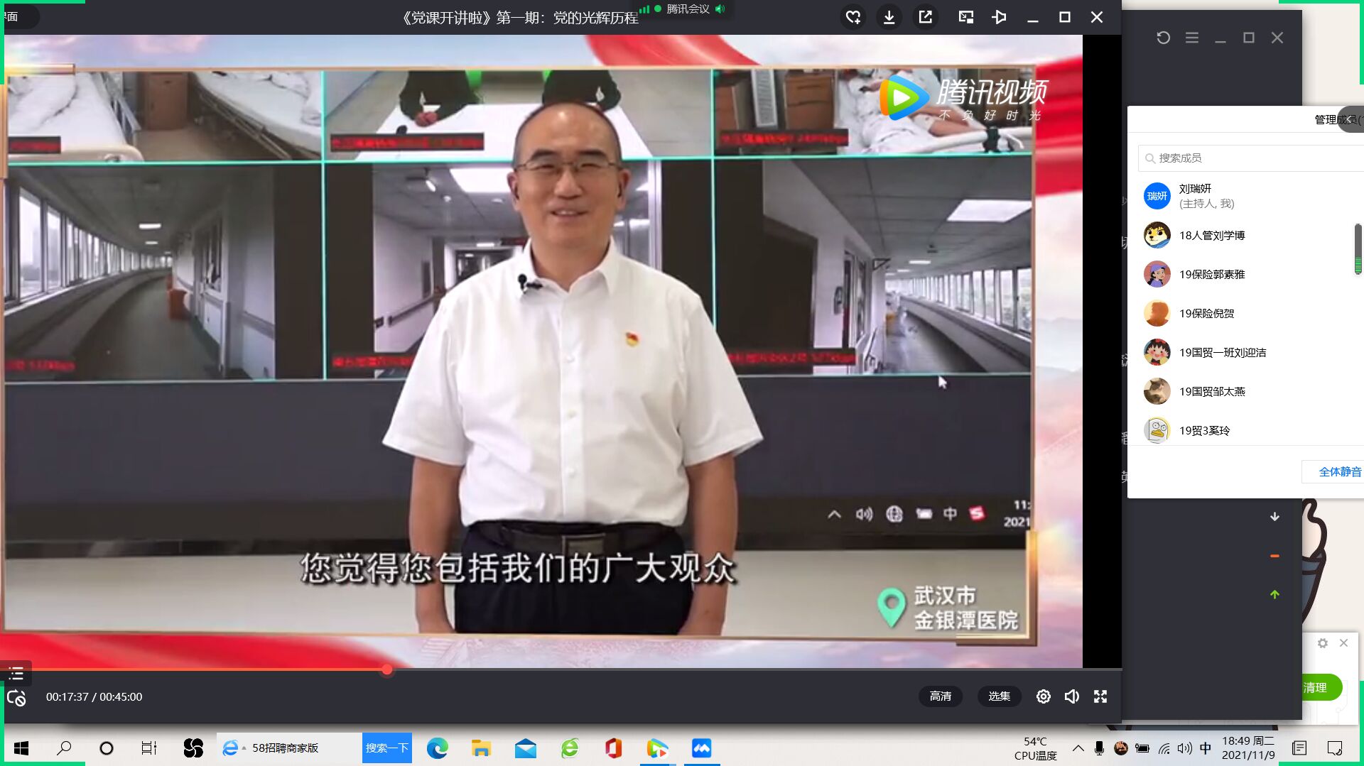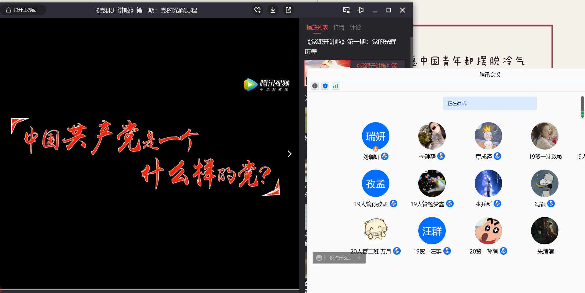 11月9日晚,为进一步提高入党积极分子的政治理论素质,深入学习贯彻落实党的十九大精神,医药经济管理学院分党校按照学校党校要求,组织第59期121名入党积极分子通过线上腾讯会议形式集中收看《党课开讲啦》第一期《党的光辉历程》。