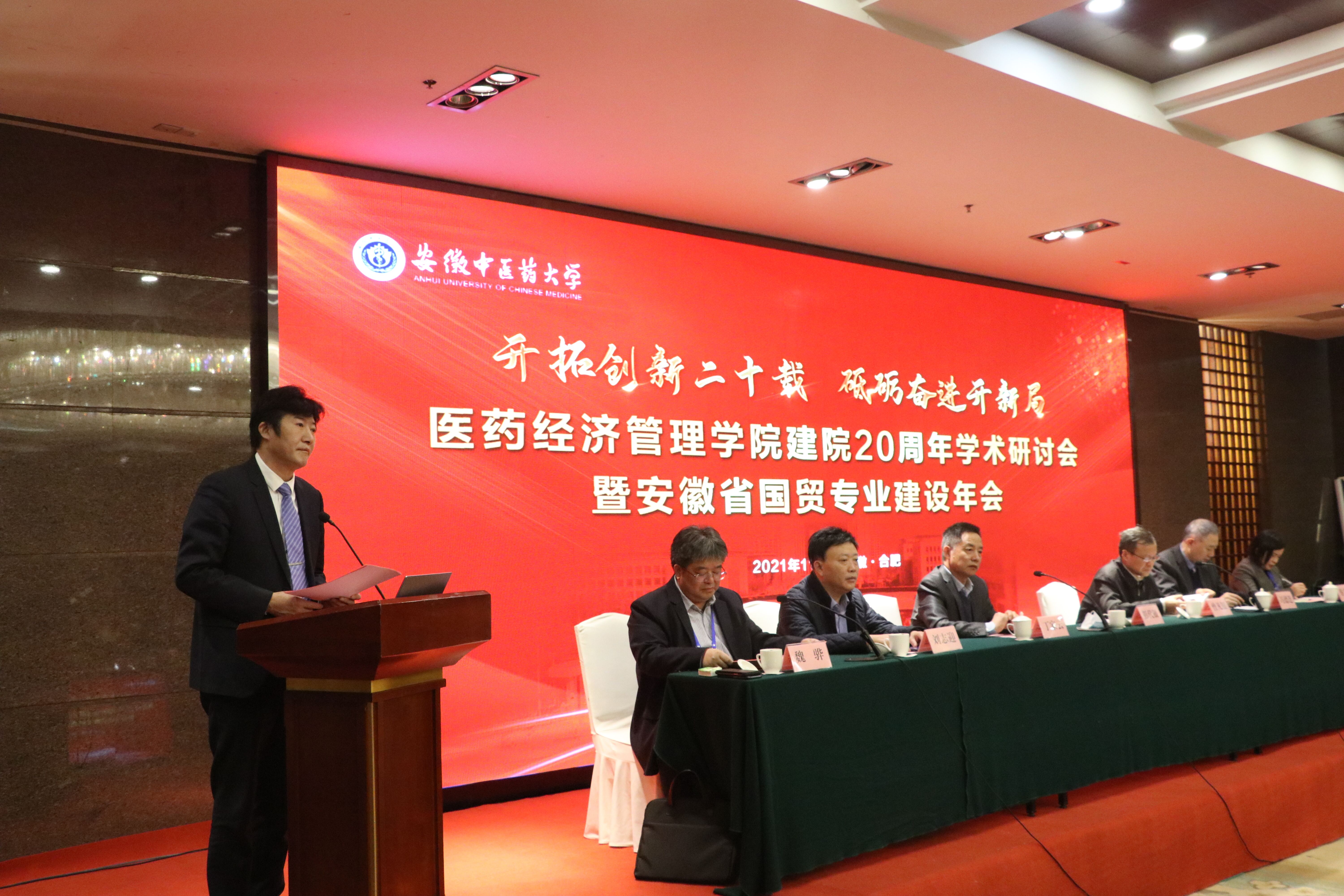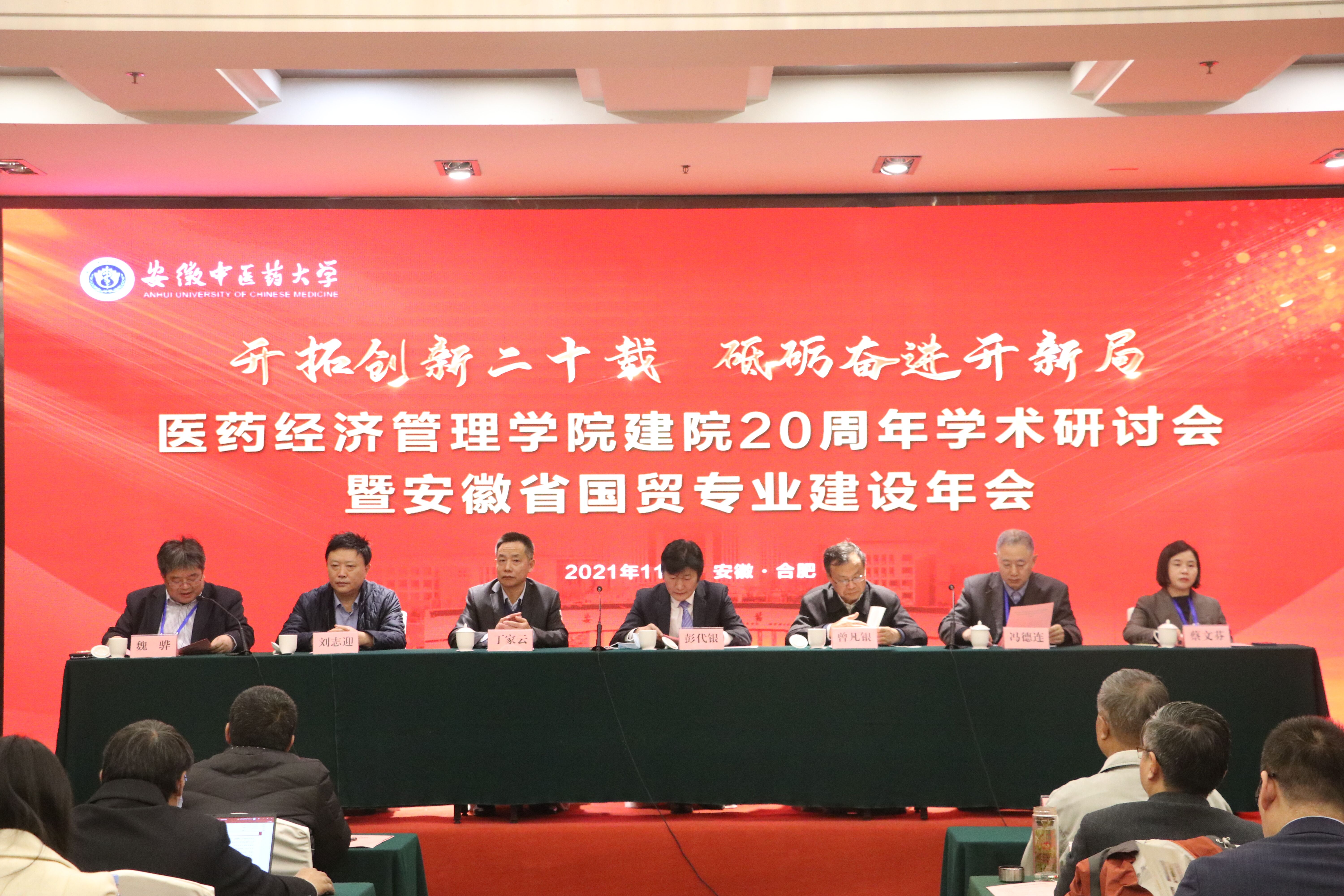 11月12-13日,安徽中医药大学医药经济管理学院建院20周年学术研讨会暨2021年安徽省本科高校国际经济与贸易专业建设年会在合肥市梅山饭店顺利召开,为贯彻疫情防控总要求,会议采取线上与线下结合的方式,有来自安徽省社会科学院、中国科学技术大学、合肥工业大学、安徽大学、安徽财经大学、安徽中医药大学、安徽工业大学、安庆师范大学、铜陵学院等20多所省内高校、科研院所以及部分校友、师生近50人参加了线下会议。医药经济管理学院历届校友、部分在校师生以及省内本科高校的国际经济与贸易专业的师生超4000人次参加线上会议。