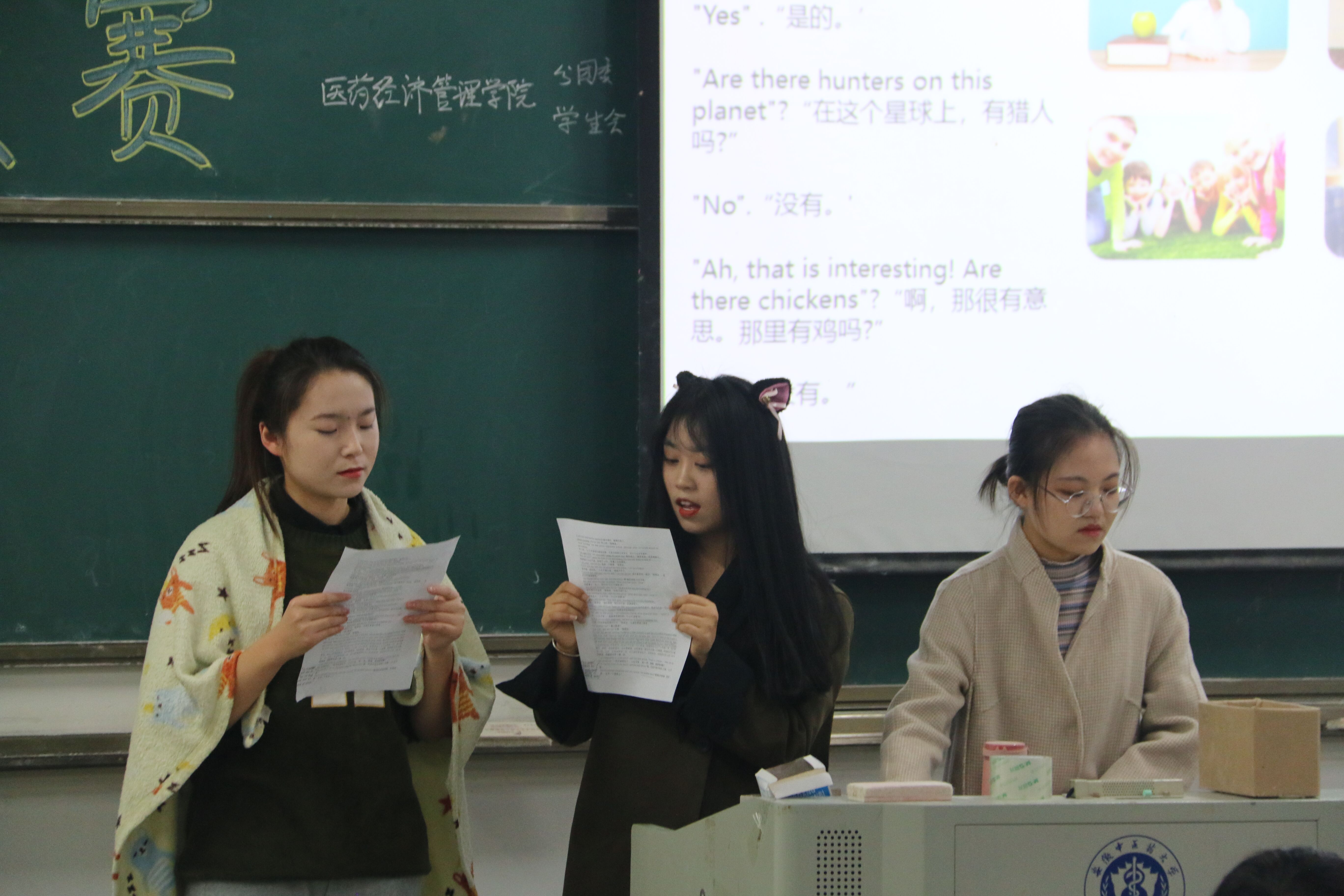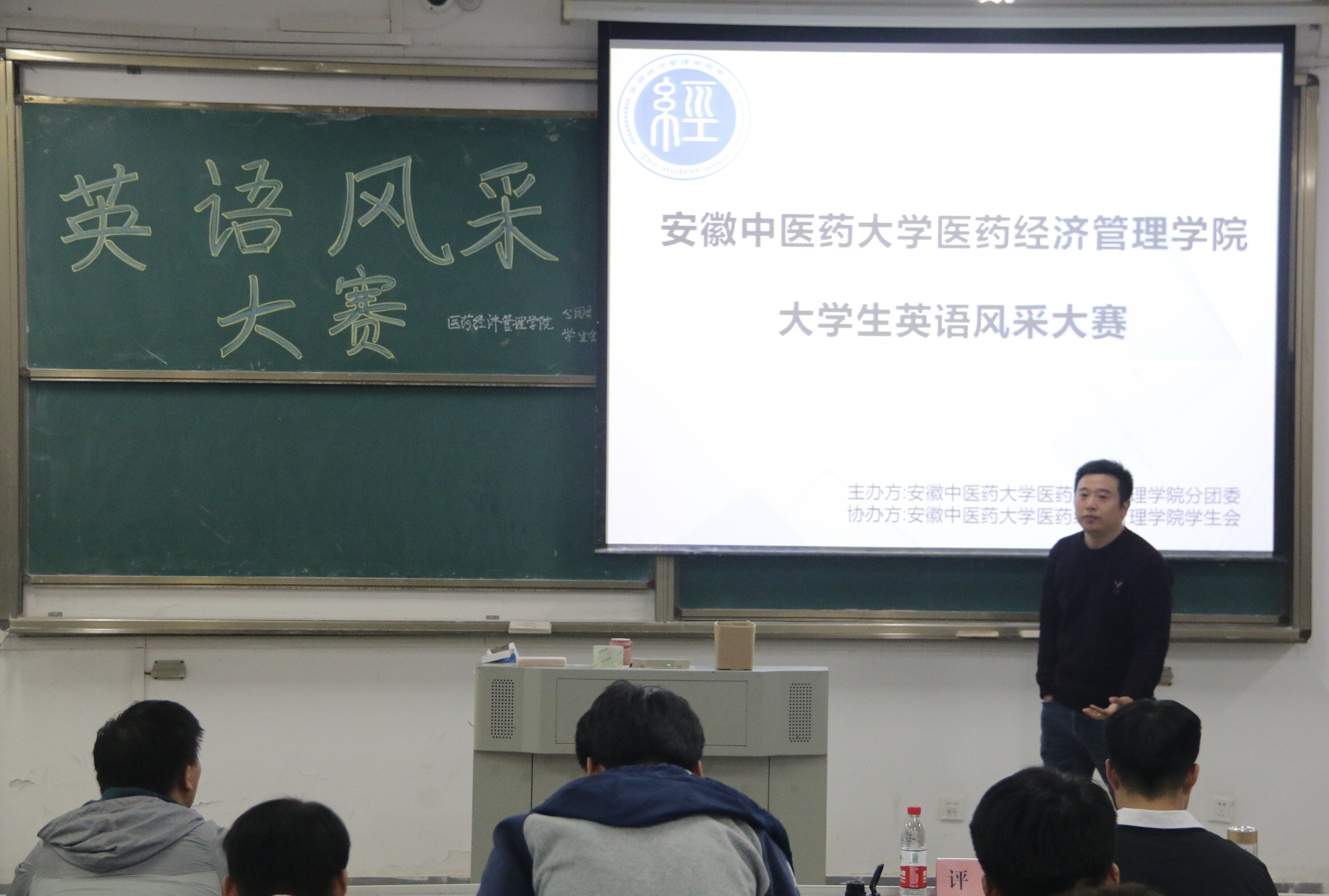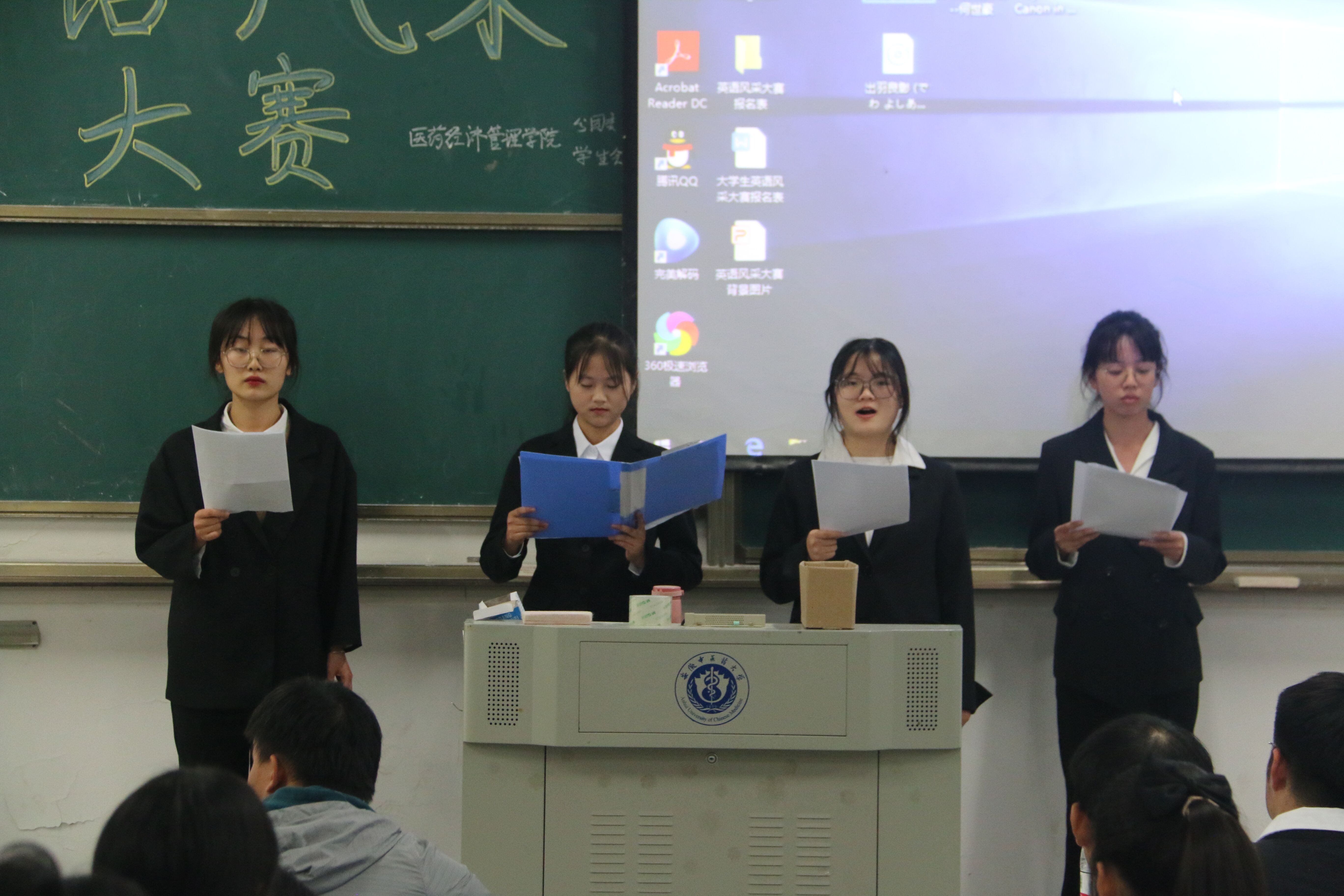为了激发学生英语学习的兴趣,活跃学校英语文化氛围,拓宽学生视野,培养学生思辨能力与跨文化交际能力,提高学生的综合素质, 11月15日,医药经济管理学院举办第七届大学生英语风采大赛院赛,本次比赛邀请到指导教师潘银星、英语协会副会长王璋屹以及学院学生会部分代表作为评委,部分班级学生观看本次比赛演出。