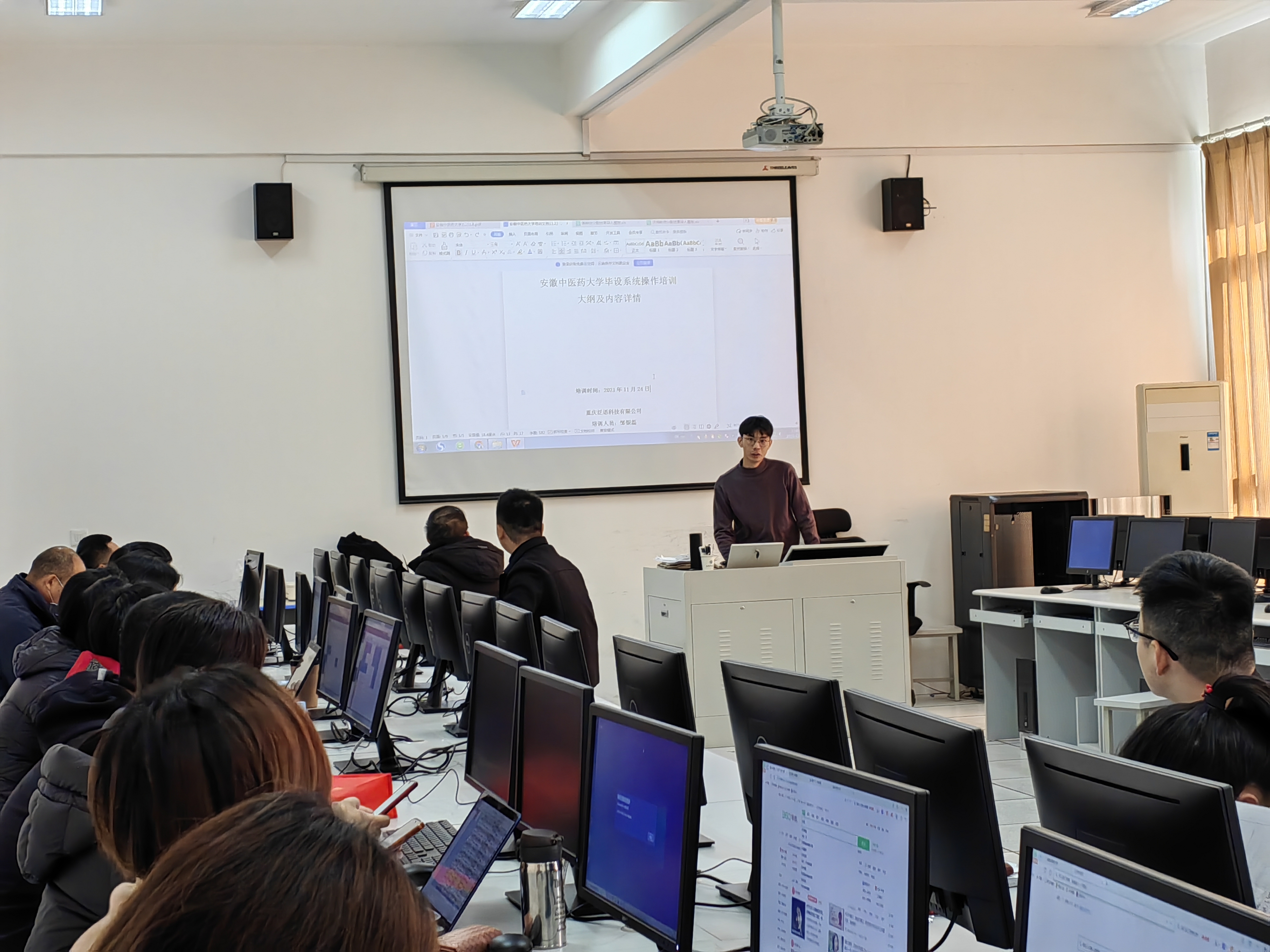 11月24日,为进一步落实毕业论文全过程管理,提升毕业论文规范化、信息化管理水平,医药经济管理学院邀请维普公司技术人员对毕业论文管理系统进行现场培训。学院副院长陶群山、论文指导老师、专业负责人参加了现场培训会。