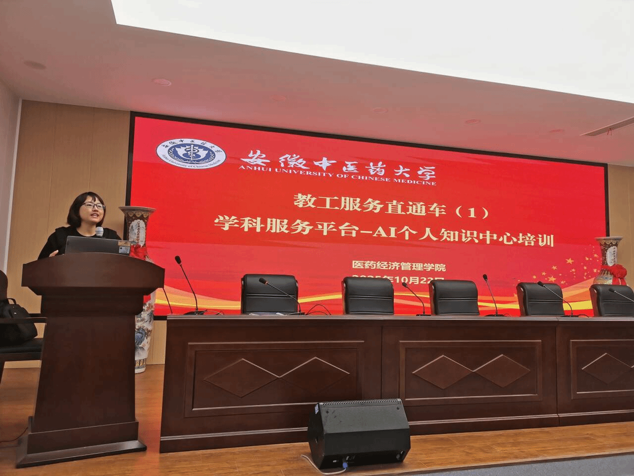10月22日下午,医药经济管理学院联合学校图书馆举办“教工服务直通车”首期活动——学科服务平台AI个人知识中心培训。培训由学院党委书记张军主持。