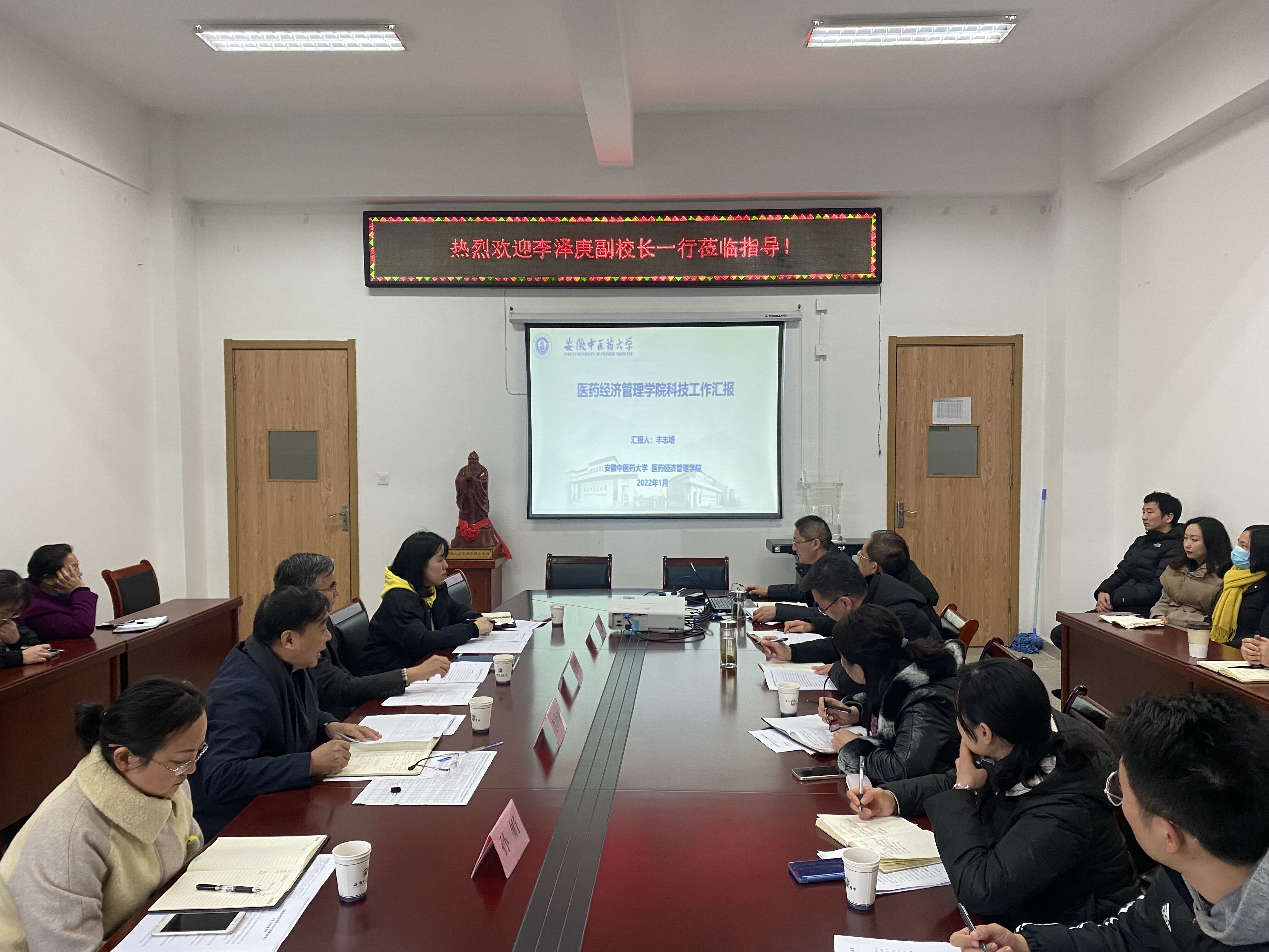 1月6日下午,学校党委常委、副校长、省中医药科学院专职副院长李泽庚、科技处处长吴德玲一行深入医药经济管理学院、体育健康学院调研指导科研工作。学院领导班子成员,骨干教师代表等参加会议。