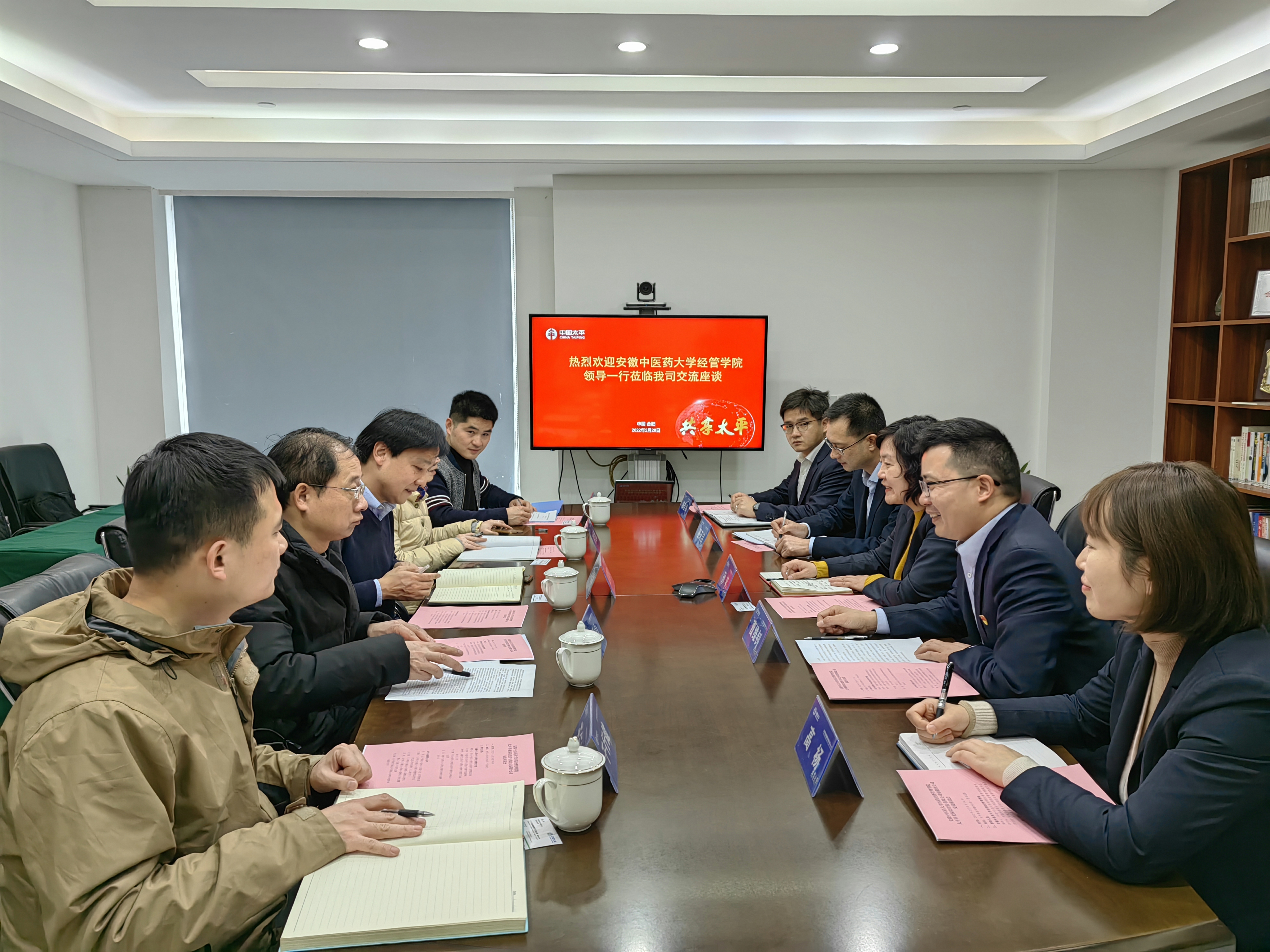 2月28日下午,医药经济管理学院副院长陶群山、党委副书记彭青和带队前往中国太平养老保险股份有限公司安徽分公司洽谈实习就业基地事宜。
