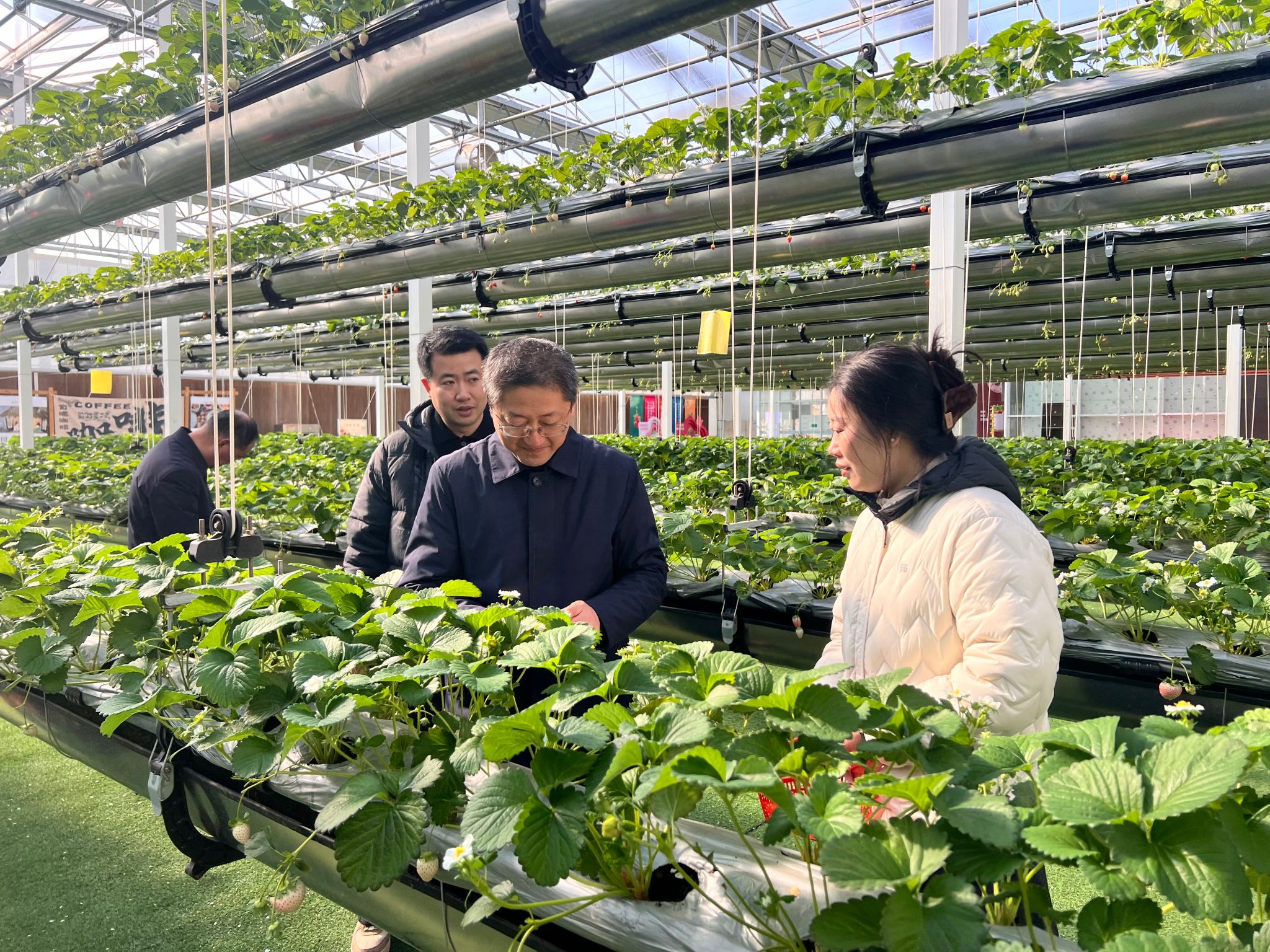 签约仪式后,在小镇总裁田秉昌、党支部书记黄金华的陪同下,学院一行实地走访了小镇康养中心中医馆、怡园6号楼疗休养样板房及智慧农业空中草莓园。通过现场观摩与深入交流,学院教师进一步了解了小镇在推动中医药与康养服务深度融合、践行“以长者为中心”服务理念,以及探索“医养+文旅+农业”产业融合发展模式方面的创新思路与生动实践。