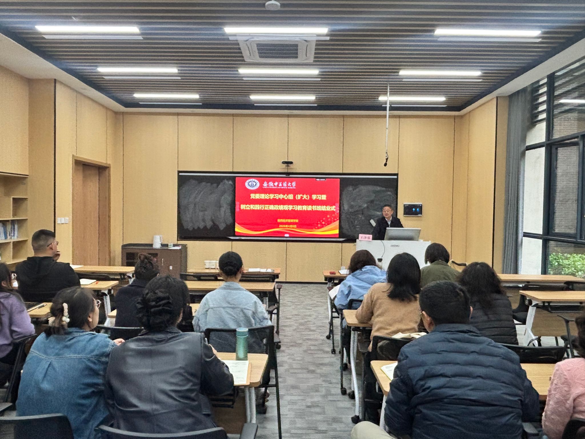 4月8日下午,医药经济管理学院举办党委理论学习中心组(扩大)学习暨树立和践行正确政绩观学习教育读书班结业式。学院党政领导、全体教职工参会。