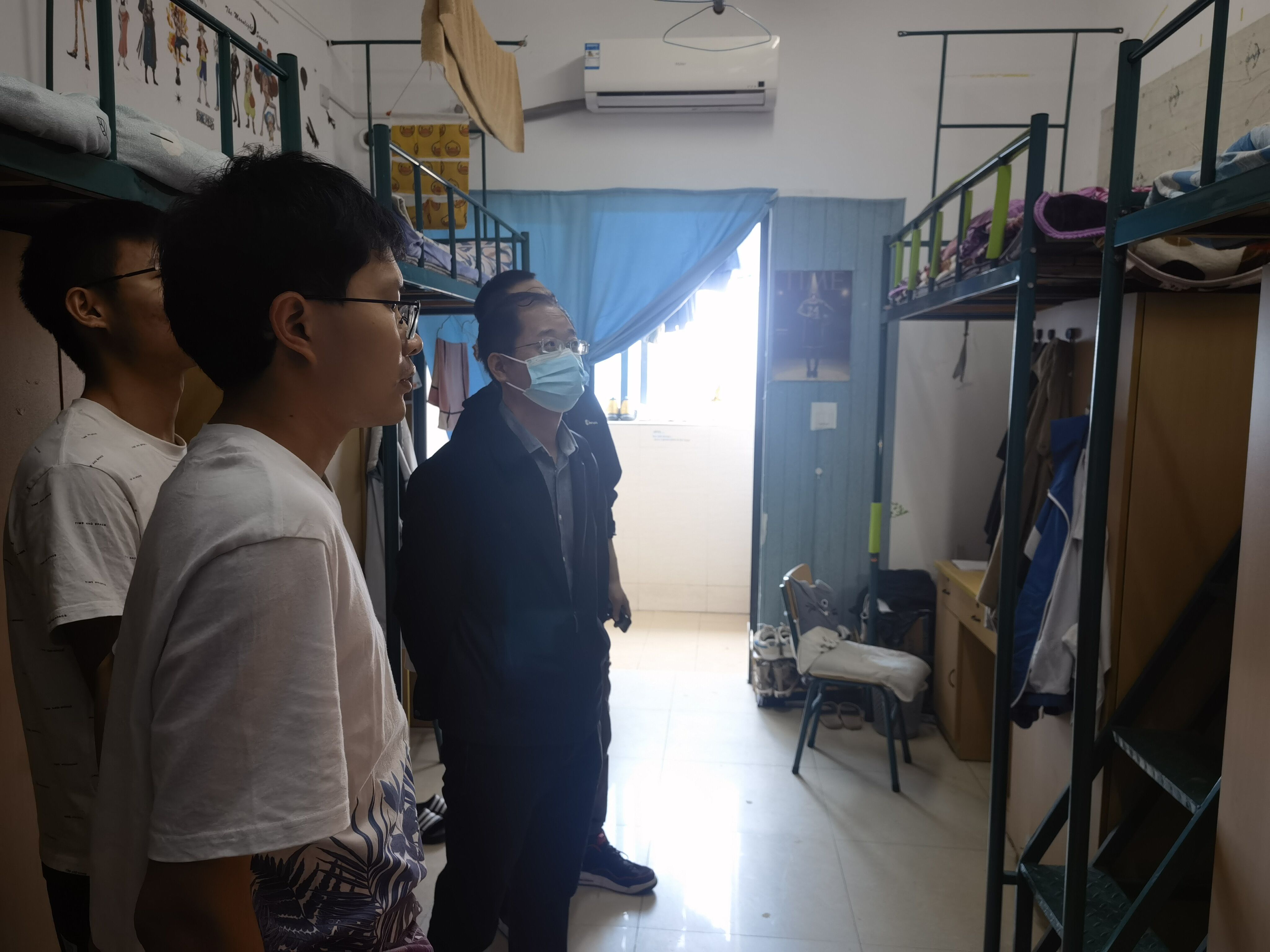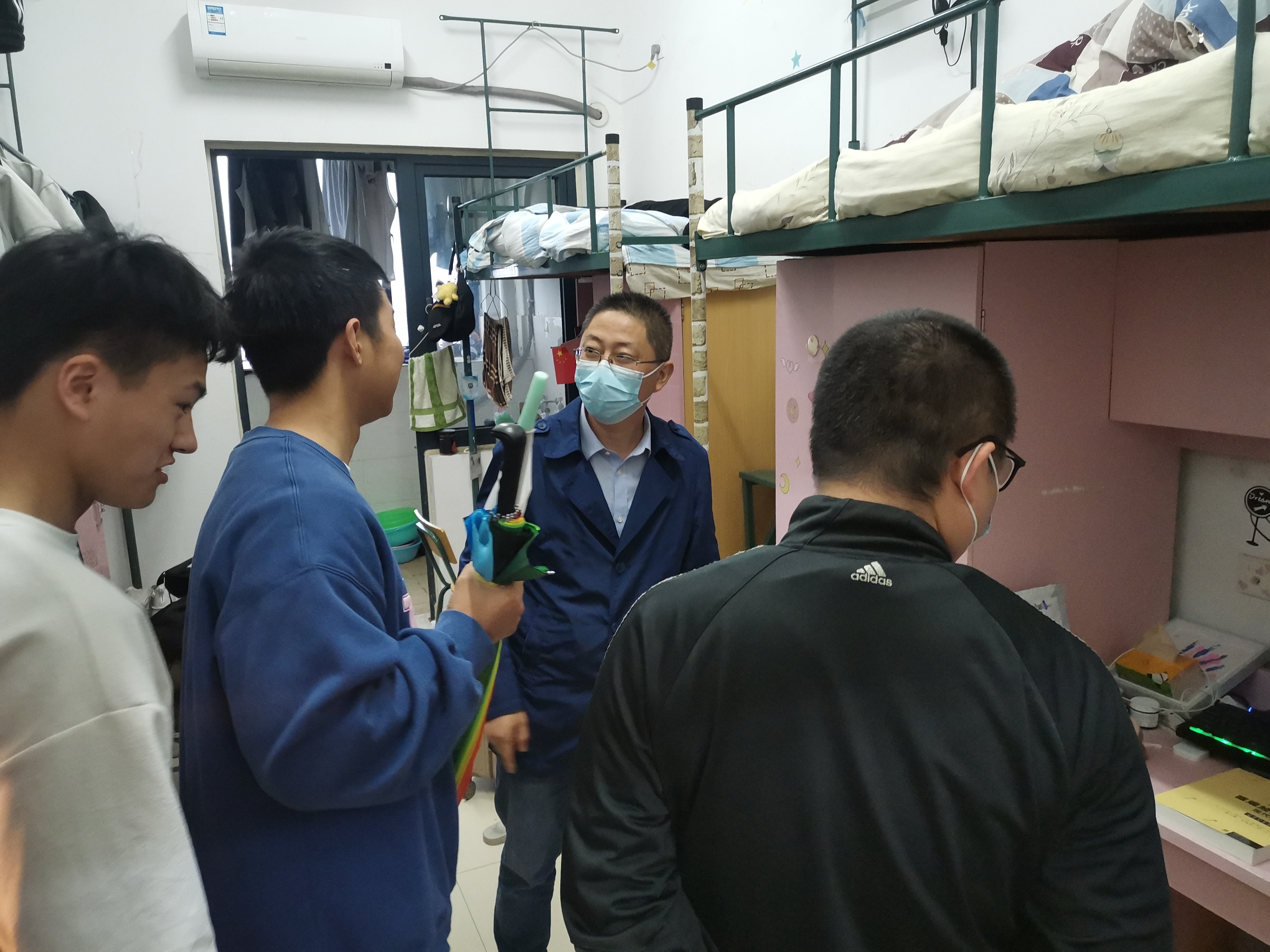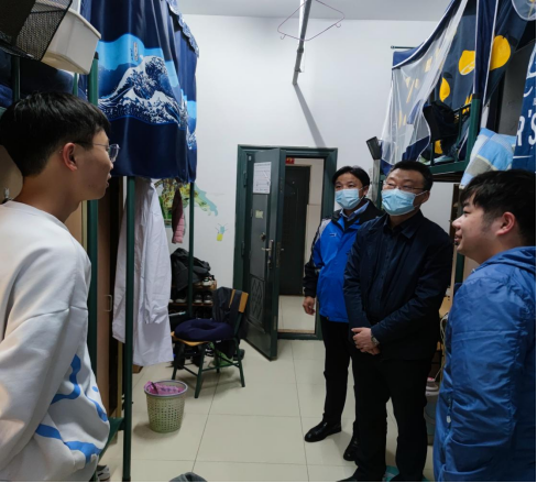 学院党政领导在辅导员的带领下分别走访了不同年级的学生宿舍,在走访过程中对学生进行学业和生活方面的关心。一是对学生宿舍环境卫生给予指导意见,希望学生在疫情期间做好宿舍卫生和通风保障,配合学校做好相关防疫要求。二是了解学生疫情期间的课余生活,鼓励学生走出宿舍,多进行体育锻炼、多参加相关学科比赛,特别强调要增强安全意识,防范网络电信诈骗。三是了解疫情期间学生的后勤保障状况,鼓励学生适当采购口罩等防疫用品。四是对学生后期的考研和就业意向进行了解,提醒学生要提前做好人生规划,将时间精力多花在学习和提高自身综合素质上,增强自我竞争优势。