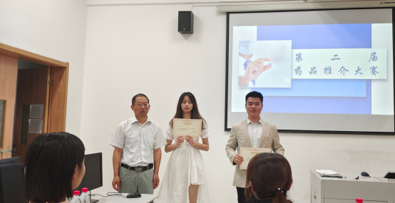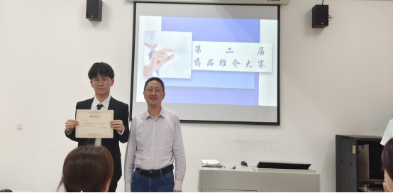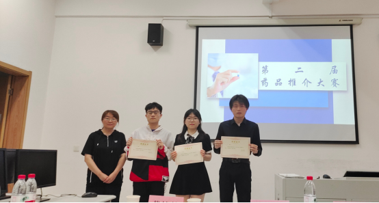 为增强学生对医药商品知识的理解,提升学生组织药品宣讲推介的实践能力,培养学生的专业认同感。5月28日,医药经济管理学院在学院教学楼437举办第二届药品推介大赛,2020级国际经济与贸易专业的145名学生参加了此次比赛。院长丰志培、副院长陶群山、方悦老师出席了本次比赛,国贸教研室主任倪飞、经济教研室张田田、辅导员戴婷婷和国贸教研室孙文静四位老师担任现场指导评委。