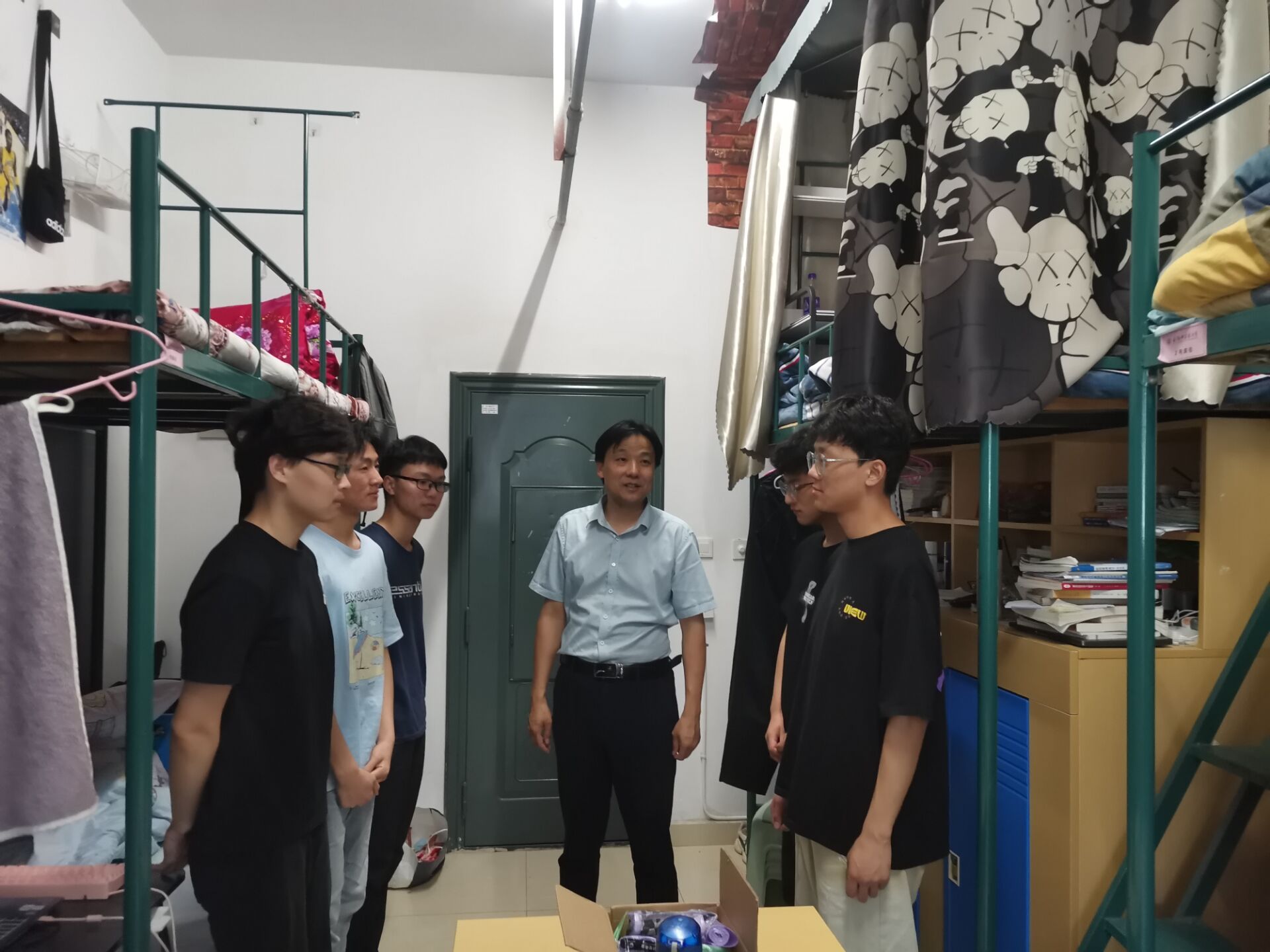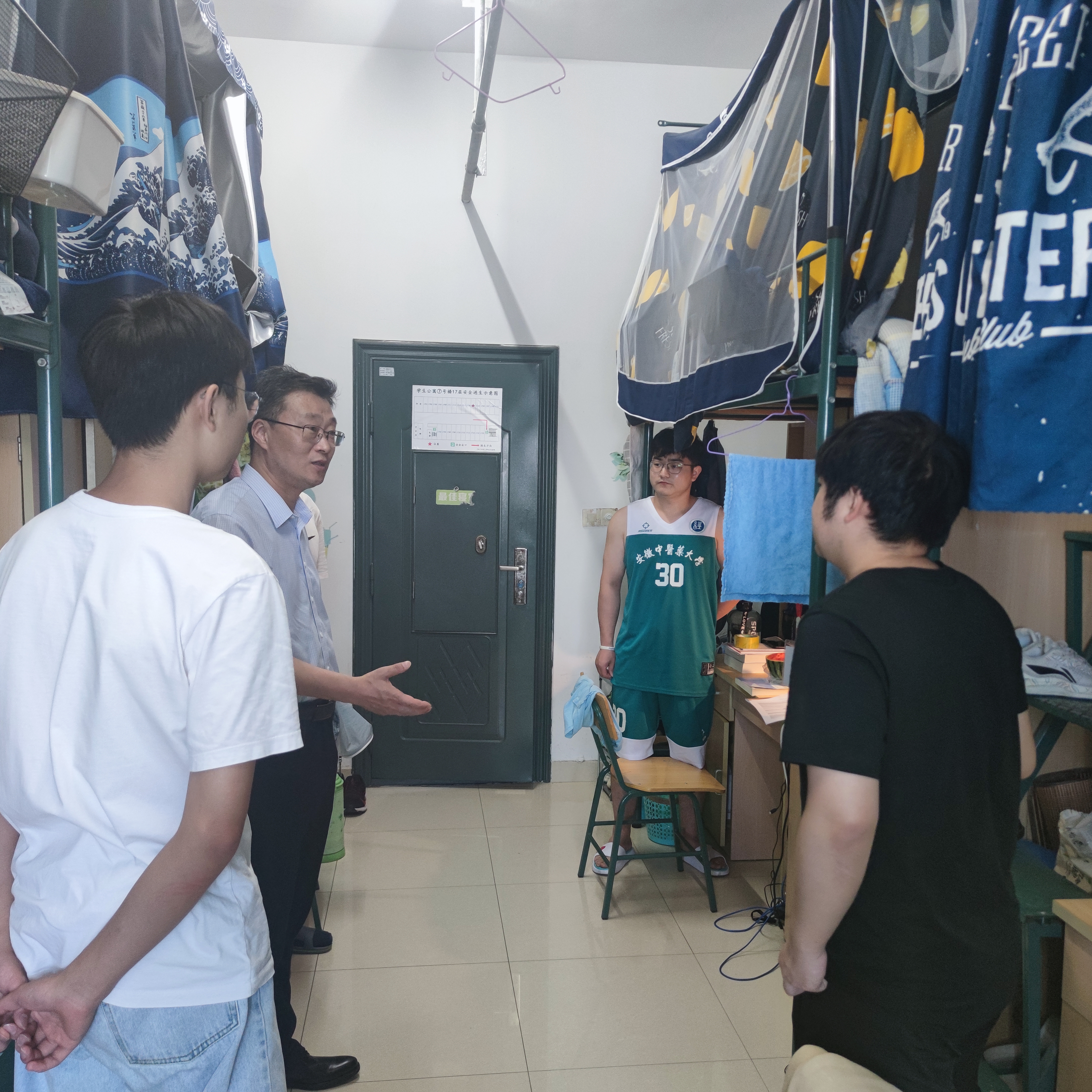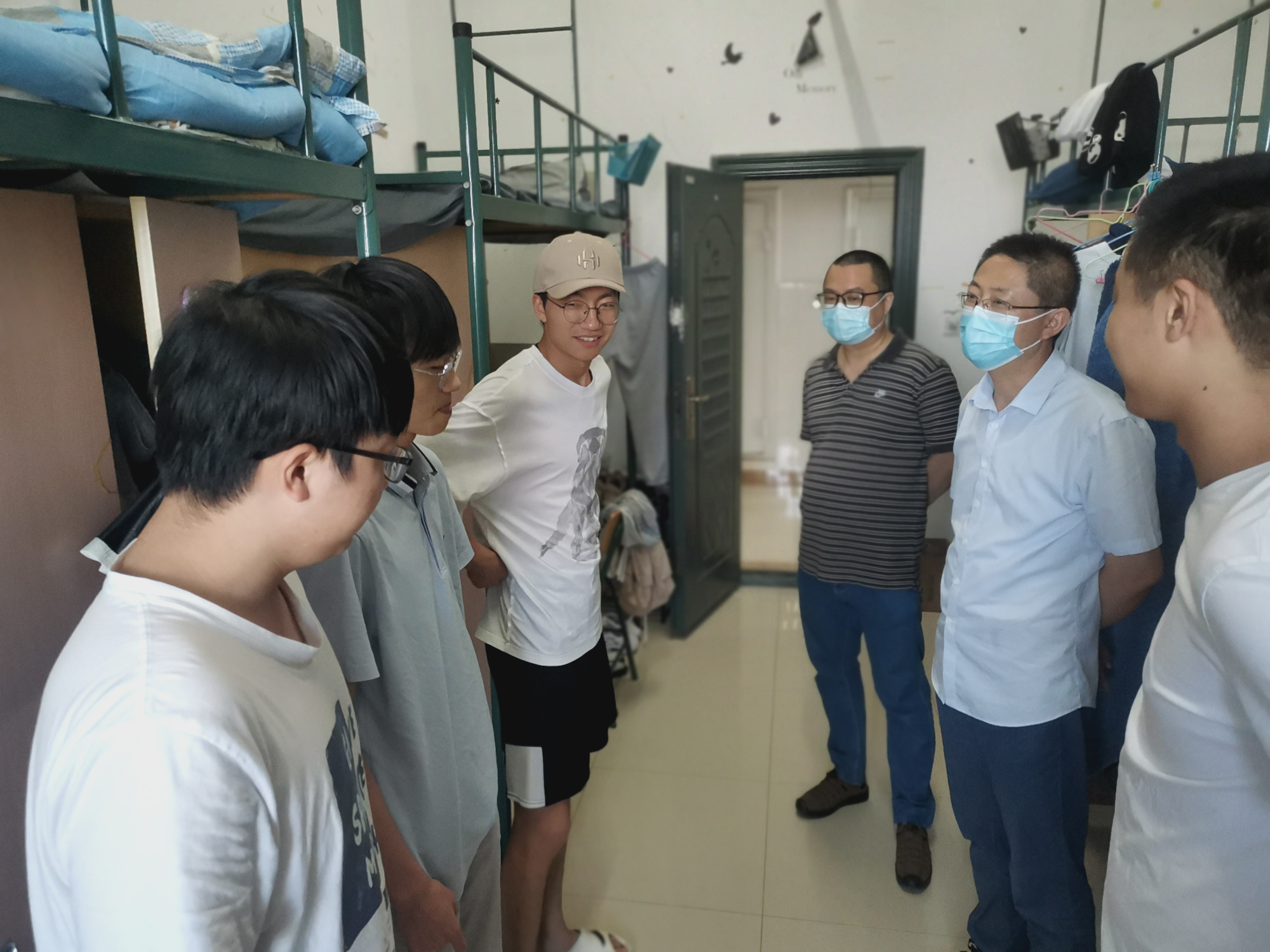 学院领导在辅导员的陪同下深入学生宿舍,走访过程中,学院领导首先对同学们致以端午佳节的节日问候,对学生宿舍的用水用电以及防火防盗情况进行了解,排查总体结果良好。学院领导在走访中一致强调,一是要紧绷疫情防控这根弦,遵守校园疫情防控的相关规定;二是要注意假期宿舍的用电用水安全,不得使用明火、违规电器等;三是注意保护好个人财产,出门记得锁门,同时谨防电信诈骗,提高个人风险防范意识;四是期末考试和四六级考试临近,要抓紧时间复习备考等。同学们纷纷点头,感谢领导、老师们的问候、提醒。