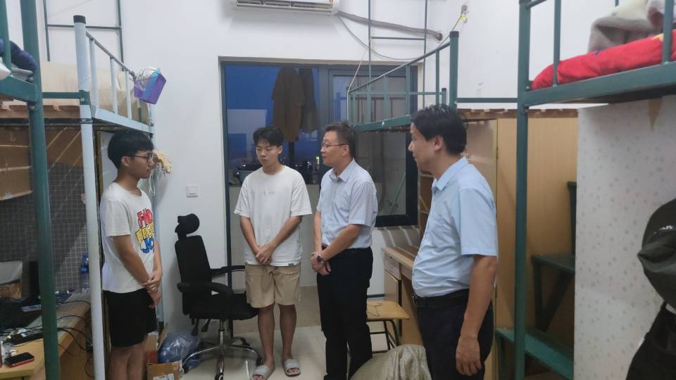 为了加强学生暑期安全管理,进一步了解留校学生的暑期学习、生活状况。8月8日晚,医药经济管理学院党委书记冯鑫、党委副书记彭青和及部分辅导员走访了学院留校学生宿舍。