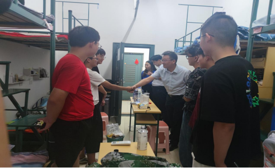报到当天,医药经济管理学院党委书记冯鑫、党委副书记彭青和等学院领导来到现场,了解报到情况,对志愿者们的辛勤工作表示感谢,对新生宿舍进行走访,对新生表示慰问和关切。