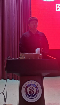 冯鑫向同学们做应征入伍动员,他带着同学们回顾了我国百年国防史、人民军队与人民群众水乳交融的光辉过去。并强调党的二十大报告指出,坚持政治建军、改革强军、科技强军、人才强军、依法治军。作为高素质人群的大学生主动积极参与到国防事业中不仅是国防安全、国家安全的需求,也是每一位同学应尽义务。他指出军队是承载年轻人梦想的地方,是年轻人优秀品格锻炼的地方,更是年轻人意志燃烧的地方。希望每位同学可以燃起心中那团火,积极投身于国防建设中。