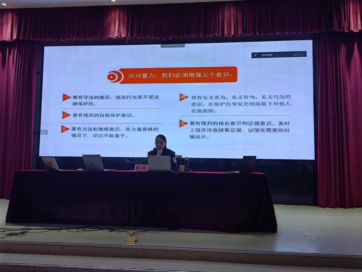 宣讲由陈晗警官主讲,他以“懂法、学法、守法”为主线,结合违法犯罪、人身安全、电信诈骗等方面的真实案例,重点向学生们普及电信网络诈骗等违法犯罪行为的主要特点、防范措施及相关危害,教育引导学生如何防范电信网络诈骗,维护自身合法权益。现场以知识讲座、互动提问等形式多环节展开,学生们也都踊跃参与配合。