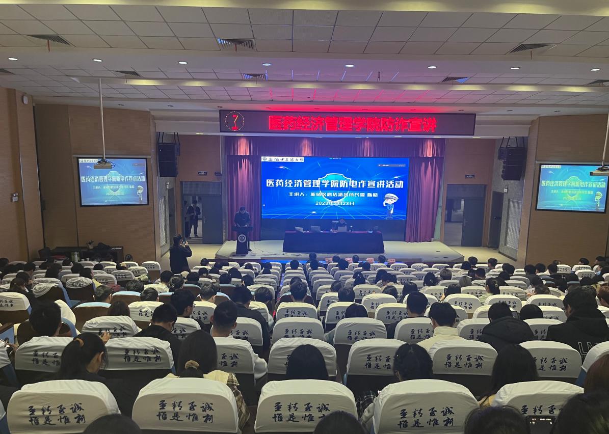 3月23日,医药经济管理学院在A114报告厅开展防电诈专题宣讲教育活动。新站区磨店派出所四级警长赵礼贵、陈晗,新站区磨店社区副主任韦高、平安建设部副部长蒋家顺,学校保卫处副处长刘亚洲、学院党委副书记彭青和以及全体在校生参加了此次活动。活动由彭青和主持。