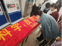 4月13日-14日,学院在校内通过展示“反邪教警示教育进校园”系列海报进行摆点宣传,并开展“崇尚科学 反对邪教”的大型横幅签名活动,向全体在校生进行反邪教警示教育宣传,发挥线下宣传阵地作用,浓厚学校宣传氛围,提高宣传实效。