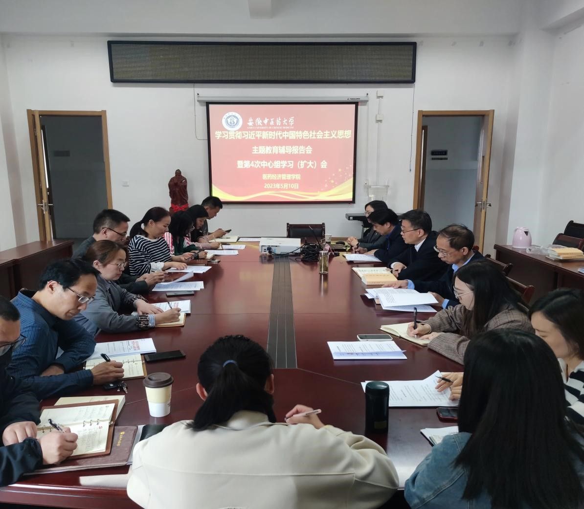 5月10日下午,医药经济管理学院开展学习贯彻习近平新时代中国特色社会主义思想主题教育辅导报告会暨第4次中心组学习(扩大)会,本次会议主题是“深入学习领会“两个确立”的决定性意义和习近平总书记关于调查研究的重要论述”。学院党政领导、党委委员、各科室负责人、支部书记、系(教研室)、中心主任、科级干部参加会议。会议由学院党委书记冯鑫主持。