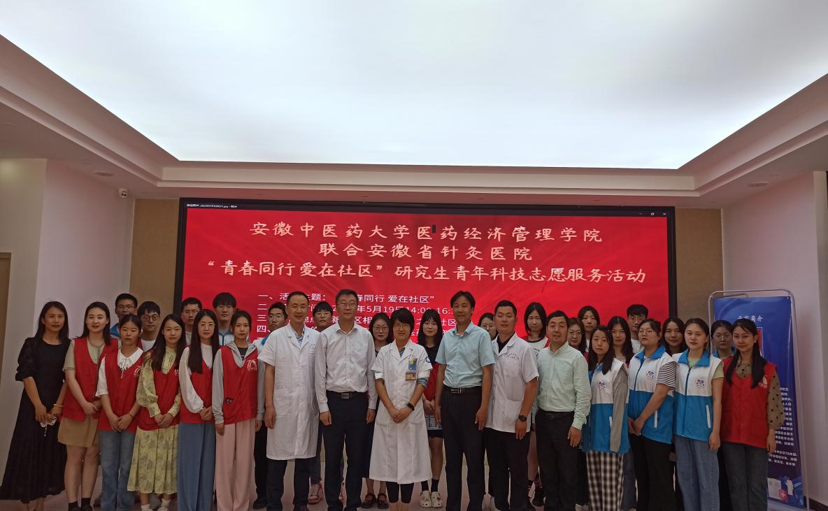 为全面贯彻党的二十大精神,深入推动学习贯彻习近平新时代中国特色社会主义思想主题教育走深走实,扎实开展2023年安徽中医药大学科技活动周活动。5月19日,安徽中医药大学医药经济管理学院联合安徽省针灸医院开展“青春同行,爱在社区”研究生青年科技志愿服务活动,携手合肥市新站区新家园公益服务社,共同深入合肥新站区磨店社区光明之家小区,为社区老年人送爱心送温暖。
