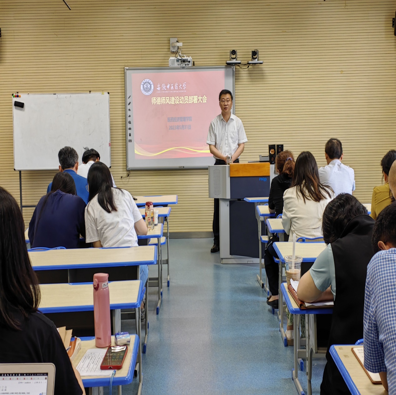 5月31日下午,医药经济管理学院召开2023年师德师风建设动员部署会,学院党政领导、全体教职工参加会议,会议由学院党委书记冯鑫主持。