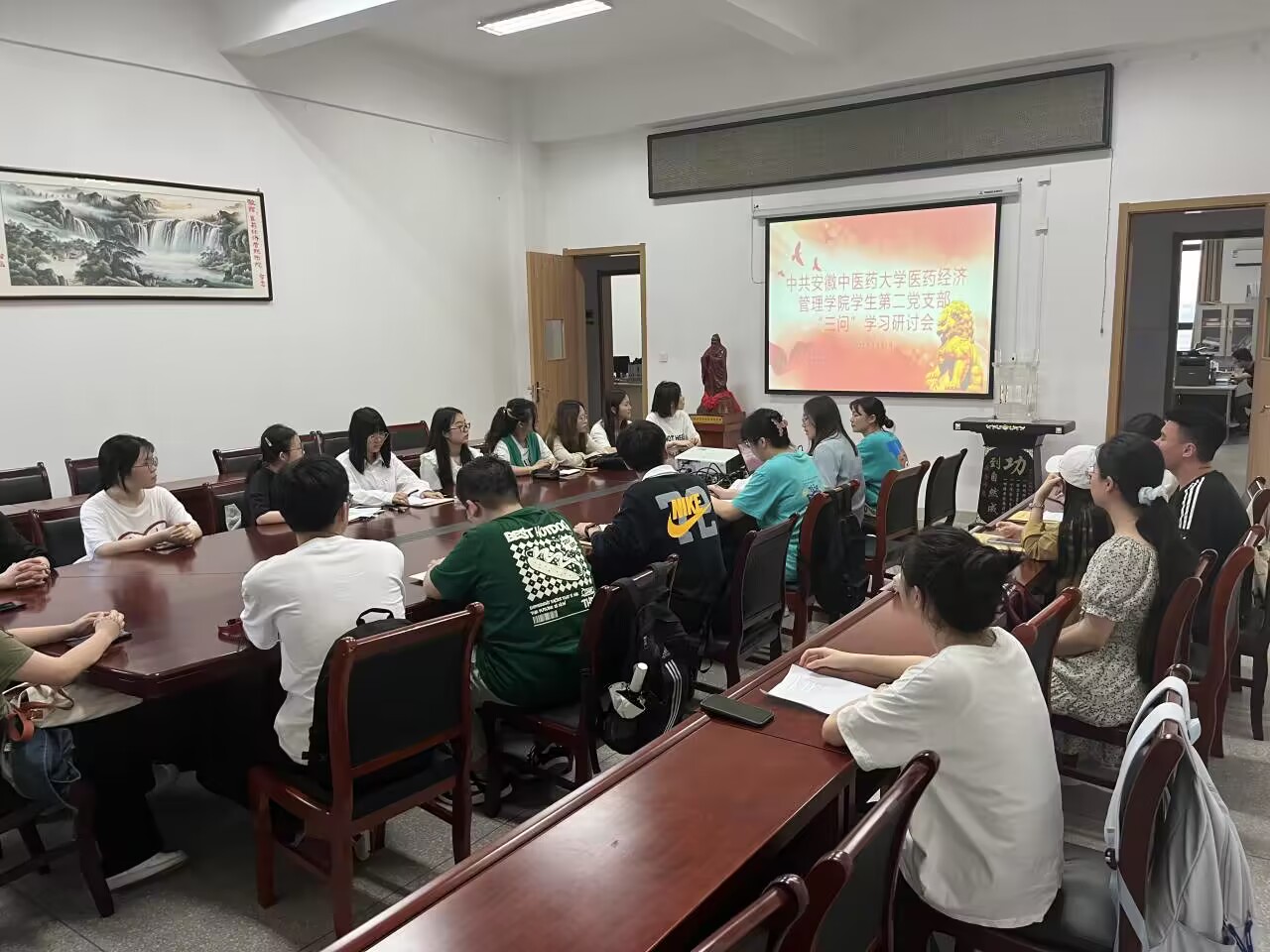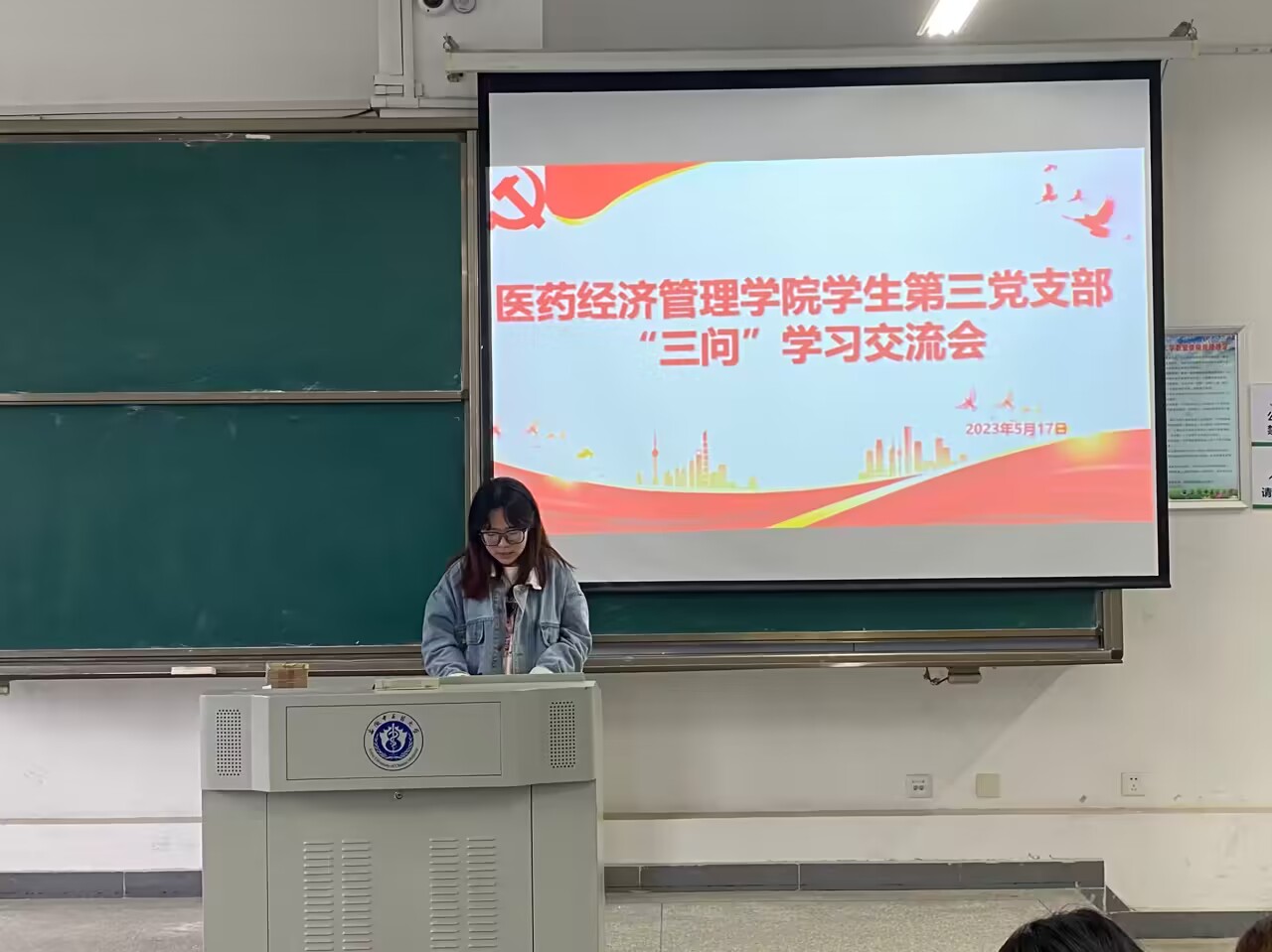 为进一步落实学习贯彻习近平新时代中国特色社会主义思想主题教育工作部署,近日,医药经济管理学院教工及学生党支部开展了“三问”研讨交流会,学院全体师生党员参加。