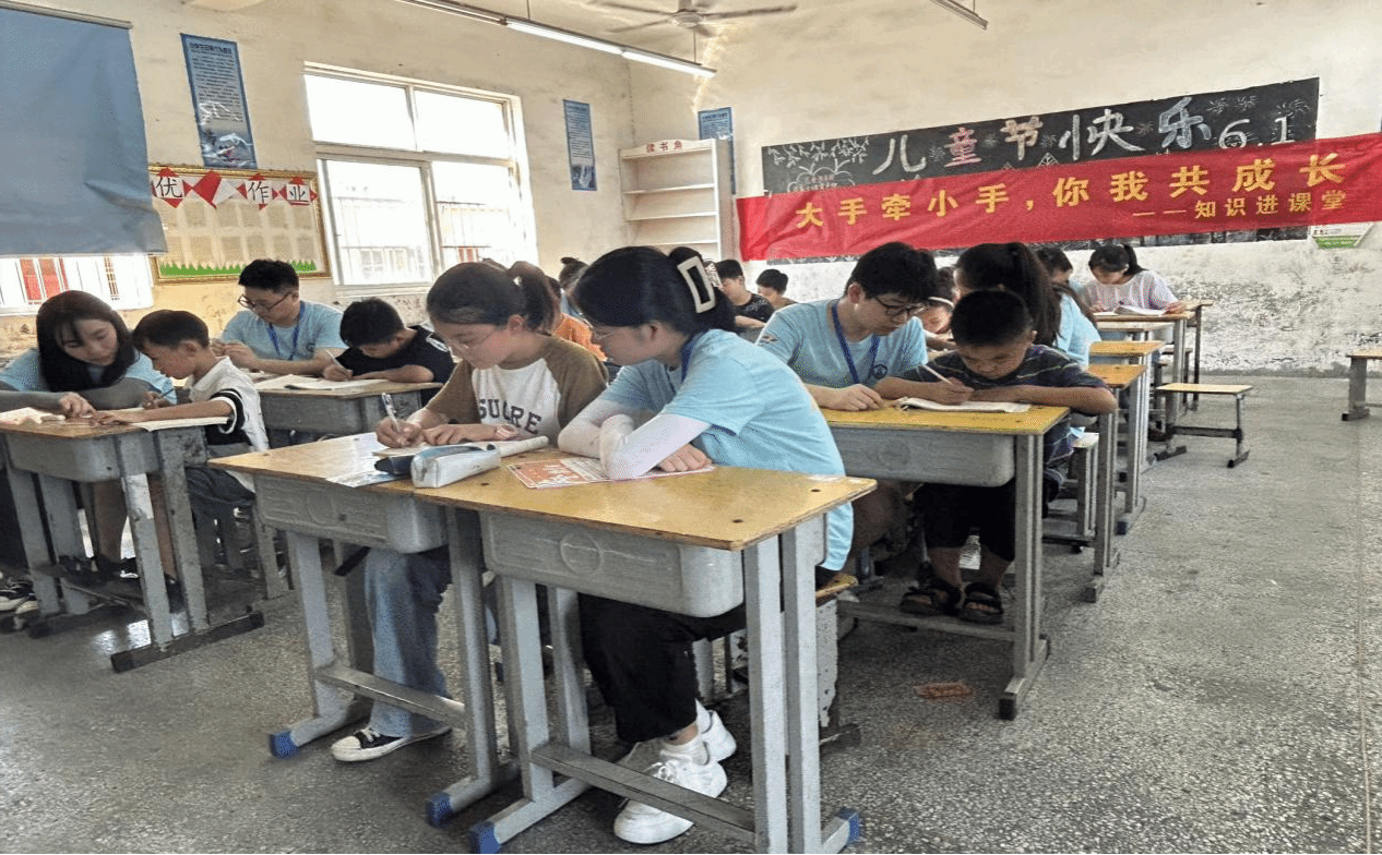 应同学们要求,实践队员们为双浮小学的同学们辅导了暑期作业。小朋友们的认真提问和大朋友们的耐心解答,正如今日的活动主题“大手牵小手,你我共成长”,当所有人都全神贯注的投入到这一场充满热情和爱心的活动中,“薪火传承”实践团队的价值也便得以体现。