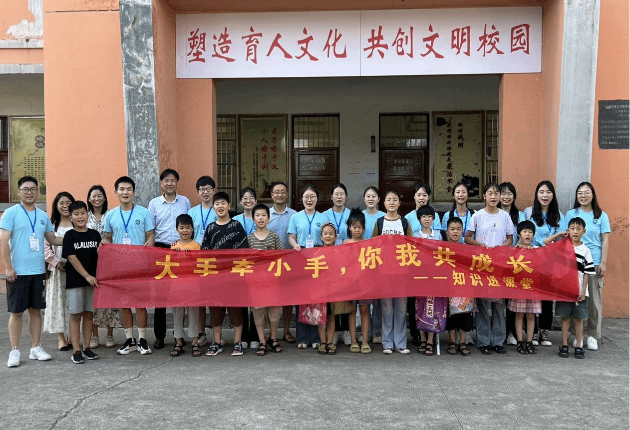 7月7日,安徽中医药大学医药经济管理学院“三下乡”实践团队来到了阜阳市太和县双浮小学,开展“大手牵小手,你我共成长”知识进课堂活动。学院党委副书记彭青和,学院团委负责人张亚丽老师及全体实践队员积极与此项活动,活动邀请了太和团县委书记孔蓓、双浮镇党委书记钱纯建以及双浮小学相关领导老师及40余名小学生共同参与。