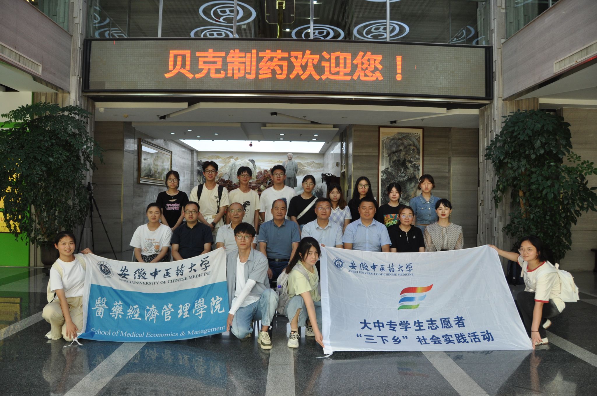 7月13日,医药经济管理学院党委书记冯鑫带领“三下乡”暑期社会实践队和暑期小学期实践队前往安徽贝克生物制药有限公司进行实地调研。