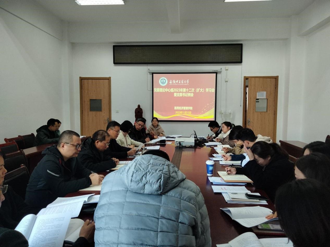 为进一步落实学校党委的决策部署,推动学院重点工作稳步开展。11月15日下午,医药经济管理学院党委召开2023年第十二次中心组(扩大)学习会暨支部书记例会。学院党政领导、党委委员、各党支部书记、各系(教研室、中心)主任(副主任)、全体管理人员、辅导员参加会议。会议由学院党委书记冯鑫主持。