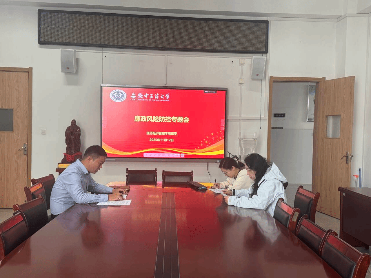 为进一步强化学院廉政建设,筑牢风险防控屏障,11月12日,医药经济管理学院纪委组织召开廉政风险防控专题会议,集中审议学院廉政风险排查与防控相关工作。会议由学院纪委书记谢啸主持,纪委委员张田田、李国转参加会议。