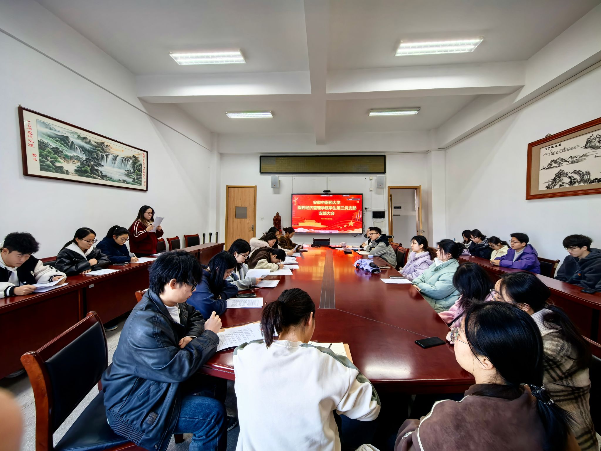 11月28日下午,医药经济管理学院学生第三党支部在学院546会议室召开支部大会暨集体理论学习会。会议由党支部书记张亚丽主持,支部全体党员及本期发展对象参加。