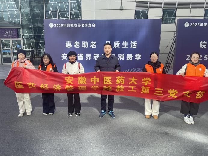 11月28日上午,医药经济管理学院教工第三党支部在学院党委副书记谢啸的带领下,前往滨湖国际会展中心参观2025年安徽省养老博览会,开展了一场内容丰富、形式新颖的主题党日活动。
