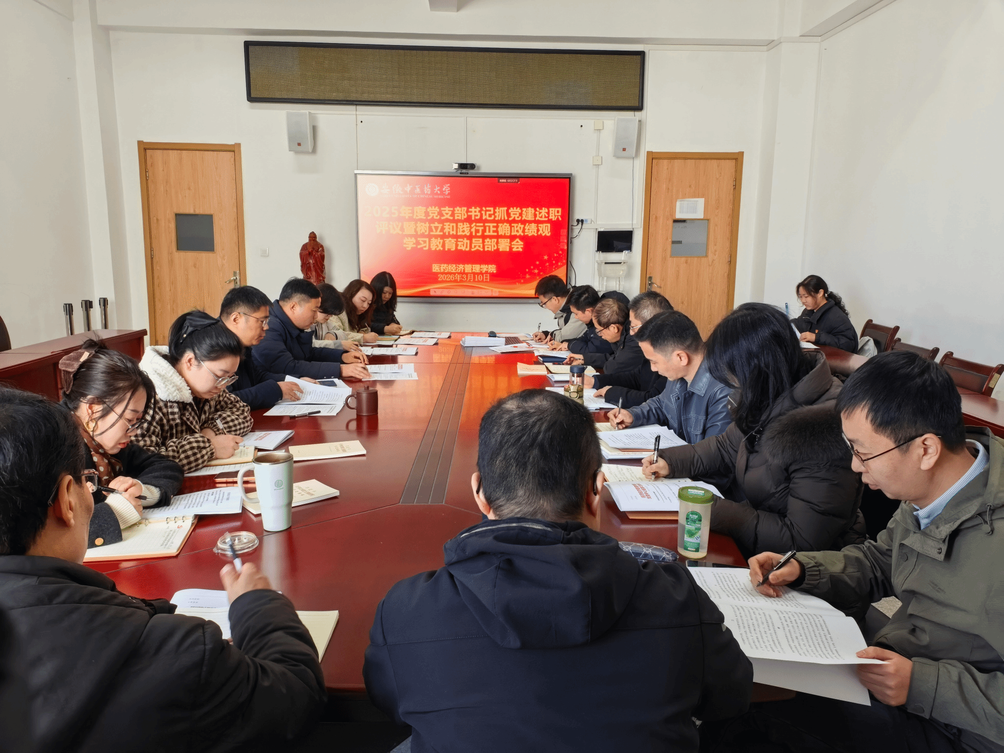 3月10日下午,医药经济管理学院召开2025年度党支部书记抓基层党建述职评议暨树立和践行正确政绩观学习教育部署会。学院党政领导、党委委员、各党支部书记、教研室主任、科级干部及师生党员代表参加会议。会议由学院党委书记张军主持。