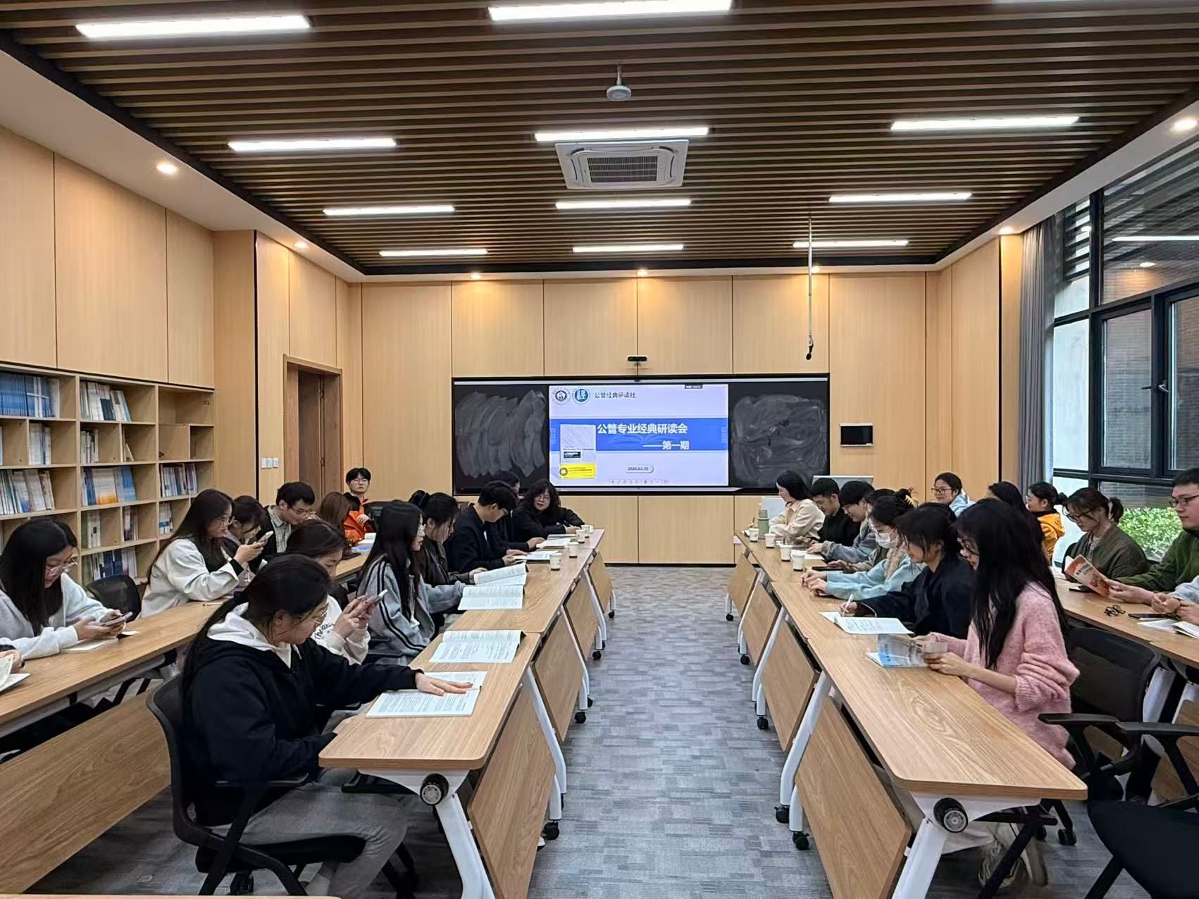 “公管经典研读会”由教工第一党支部依托公共管理系主办,每月一期,旨在营造阅读经典的良好氛围,推动学风建设,落实立德树人根本任务。(徐金菊/文图 张军/审核)