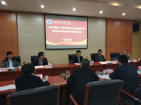 11月16日上午,医药经济管理学院在学校东区新安楼一楼会议室召开公共管理一级学科硕士学位授权点建设方案及培养方案论证会。