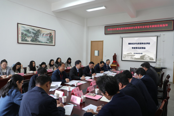 4月10日,受安徽省普通本科高校经济学类专业合作委员会委托,由安徽财经大学副校长冯德连教授,安徽财经大学金融学院院长任森春教授,安徽财经大学统计与应用数学学院名誉院长余华银教授、安徽工业大学刘家树教授、安徽师范大学经济管理学院副院长马骥教授、安徽财经大学金融系教师朱卫组成的评估专家组,对我校国际经济与贸易本科专业进行现场考察评估。学校校长彭代银、副校长魏骅、相关职能部处和医药经济管理学院党政负责人、经济系教师代表、用人单位代表及学生代表参加了专家见面会和意见反馈会。
