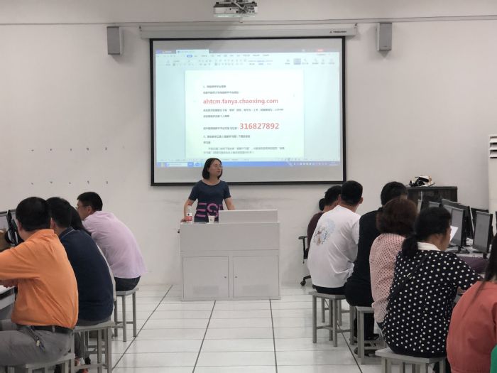 董妍妍介绍了我校网络课程建设现状。超星工程师通过PPT讲解及现场演示的方式,对超星网络平台的使用、学习通手机客户端的安装与操作进行了具体说明,并结合教师实际操作进行现场指导。