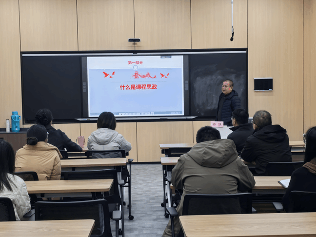 12月8日,学院特邀马克思主义学院执行院长郭跃,以及学校第二届课程思政教学大赛特等奖获得者余情老师、一等奖获得者李苗苗老师开展教学示范与专题指导。郭跃深入阐释了课程思政的核心内涵与时代要求,系统解析了思政元素融入专业课程的逻辑路径与实践方法,并结合各位教师的参赛课程,提出具有针对性的优化建议。余情、李苗苗两位老师则结合自身备课参赛经历,生动展示了课程思政与专业教学深度融合的典型案例,围绕教学设计、思政资源挖掘、课堂表达与感染力等方面进行了全面细致的示范分享。