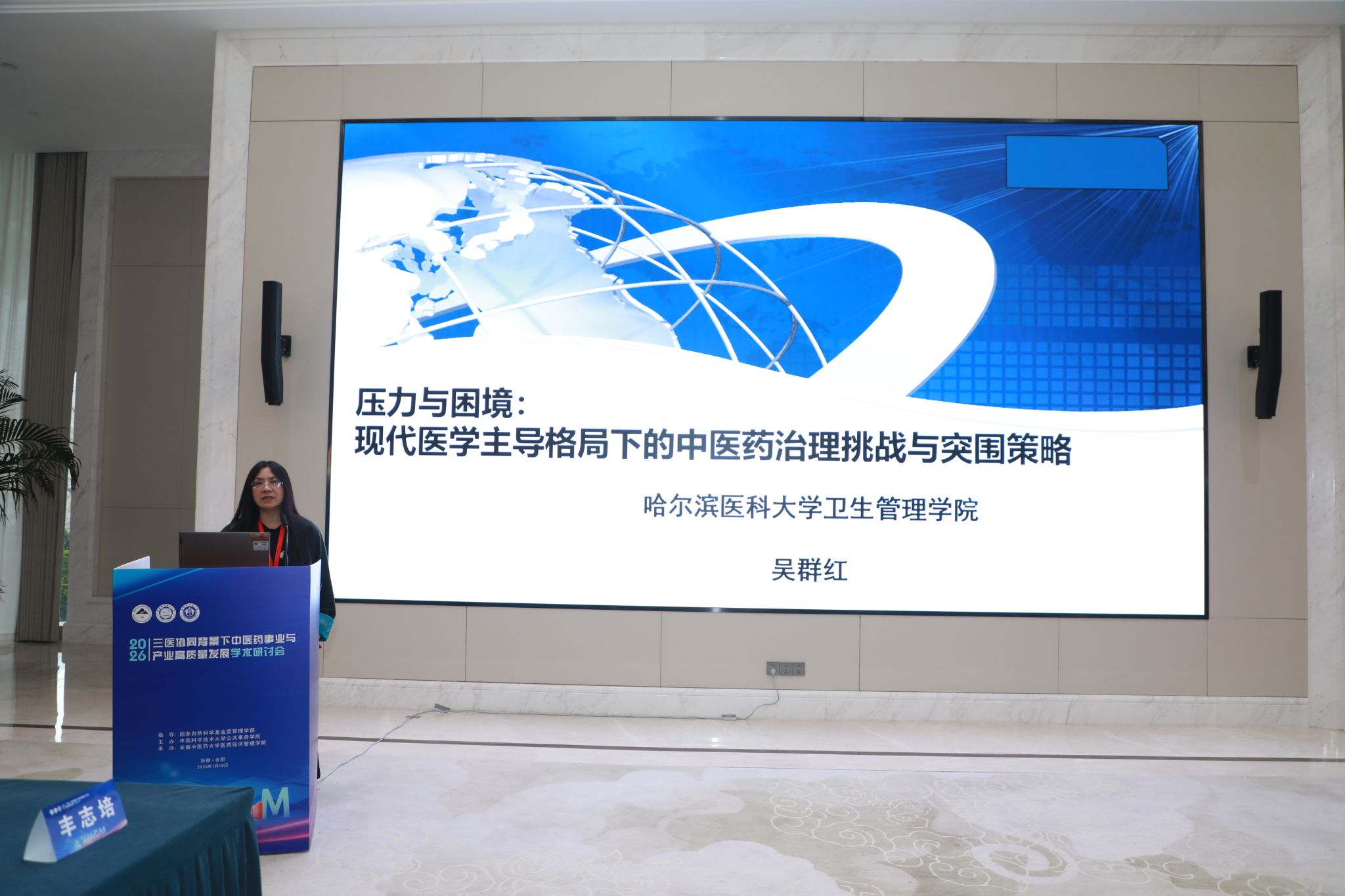 国家中医药管理局科技司中医科技处处长邱岳代表主管部门致辞。她系统介绍了国家推动中医药产业高质量发展的政策举措,包括会同国家医保局将适宜中成药、中药饮片纳入医保支付范围,开展中医优势病种按病种付费试点,实施药品集中带量采购等。邱处长强调,当前中医药发展处于难得的战略机遇期,亟需在三医协同框架下建立符合中医药特点的服务体系、管理模式和人才培养模式。