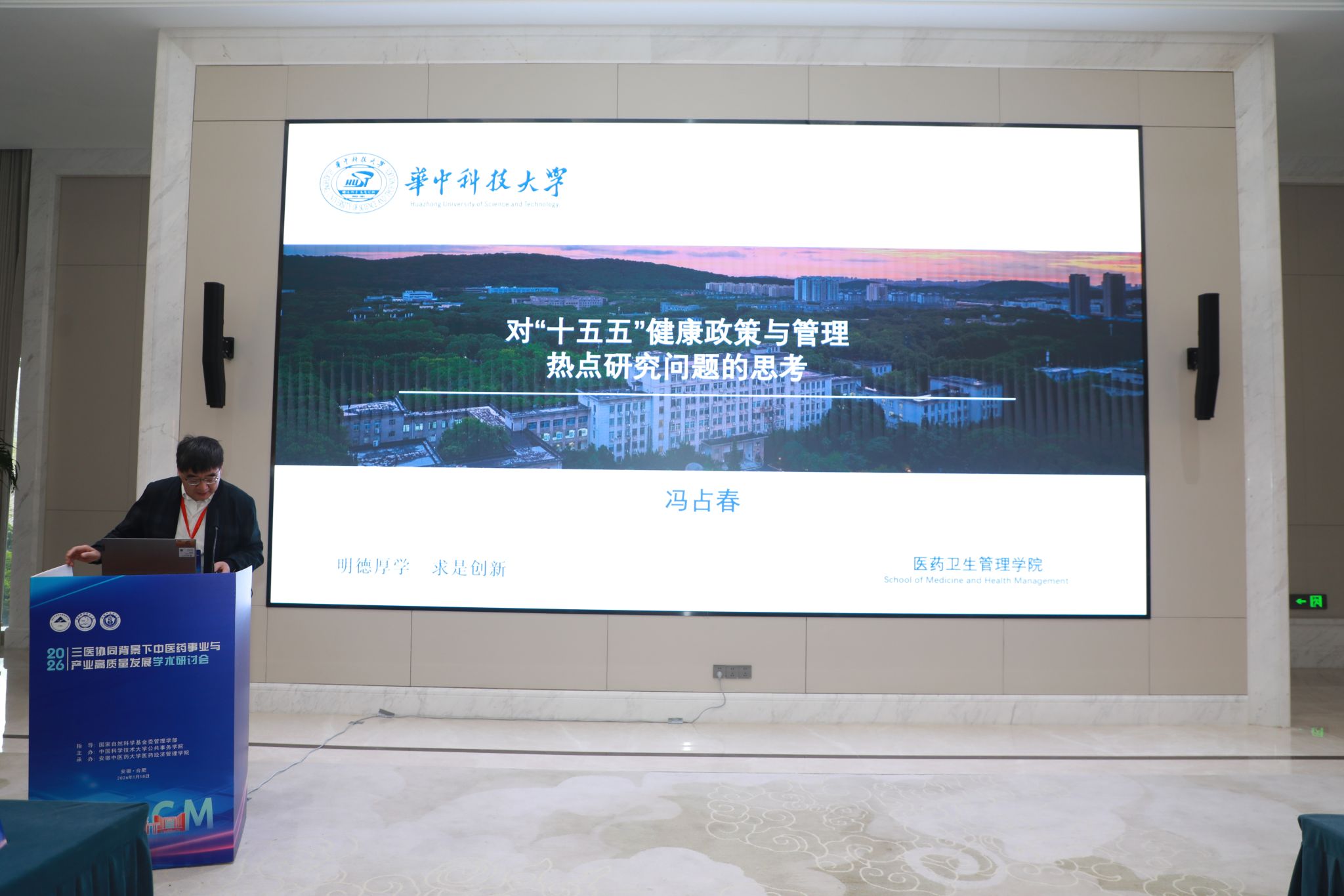 南方医科大学王冬教授、哈尔滨医科大学吴群红教授、华中科技大学冯占春教授、复旦大学罗力教授、清华大学黄存瑞教授、哈尔滨工业大学郭熙铜教授、安徽中医药大学谢瑞瑾教授分别围绕医防融合服务行为促进、中医药治理挑战与突破、“十五五”健康政策重点问题、健康积分制度、气候变化与妇幼健康、人工智能医疗应用、中医药高质量发展等议题作学术报告。